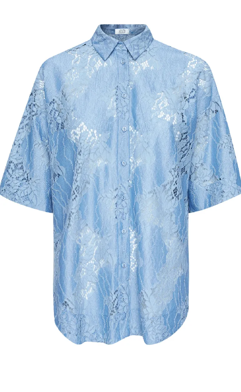 Lækker blondeskjorte fra Love & Divine i lyseblå.