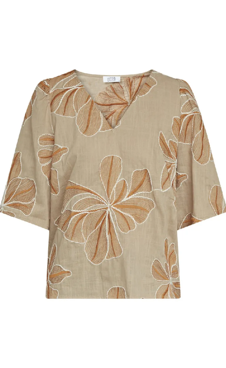 Smuk top fra Love & Divine i et sandfarvet blomsterprint.