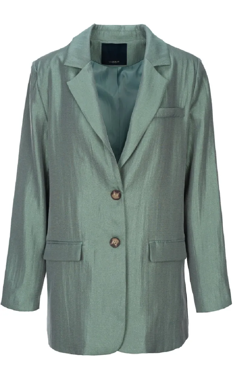 Shiny blazer fra LUXZUZ i grøn. Jakken er enkeltradet med to knapper samt re frontlommer, derudover har jakken foer.
