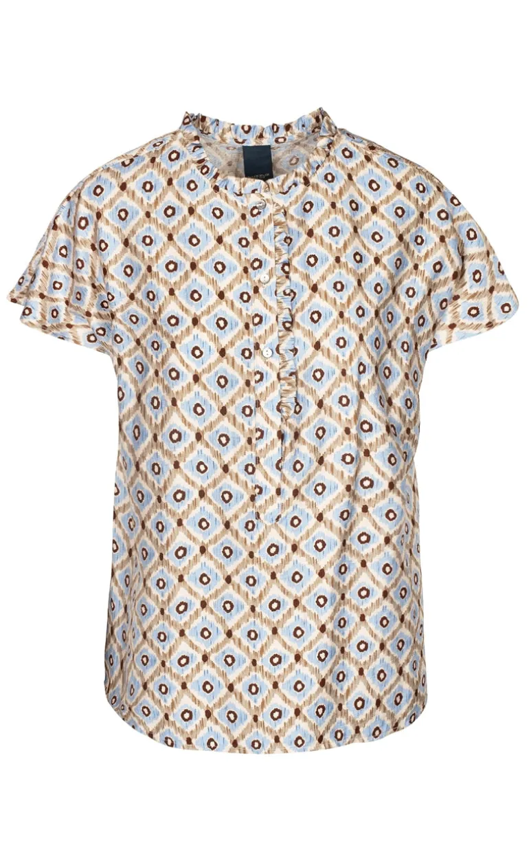 Super fin bluse fra Luxzuz med flotte blonde detaljer og knapper fortil.
