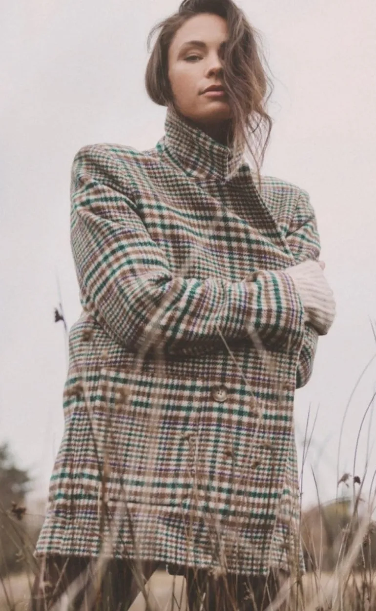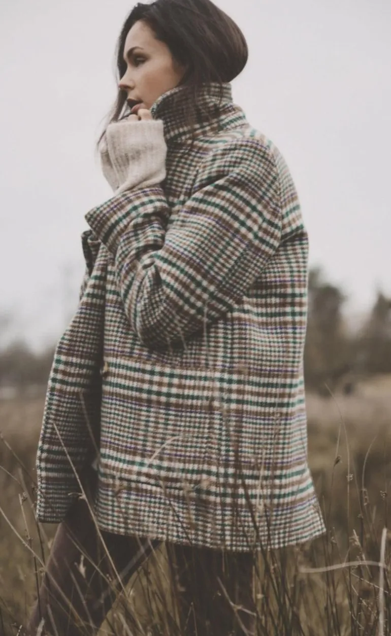 Jakken er dobbeltradet og dens længde i str. M ca. 79 cm.