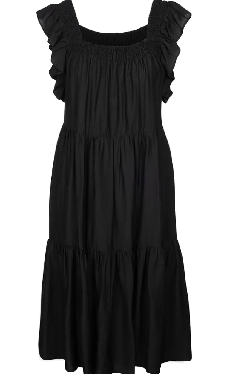 Lækker kjole fra Luxzuz i sort med flotte flæsedetaljer.