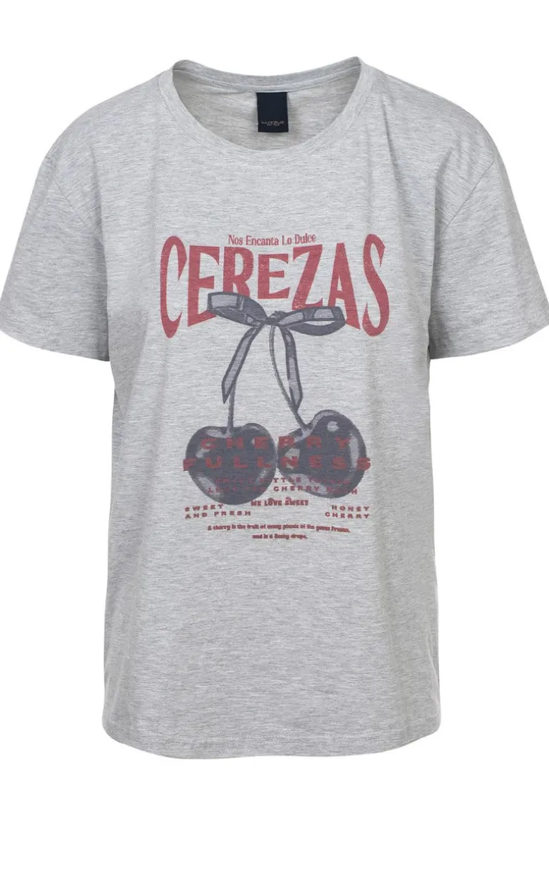 Cool t-shirt i grå med kirsebær print på forsiden. Blød og behagelig kvalitet og et stilfuldt udtryk.