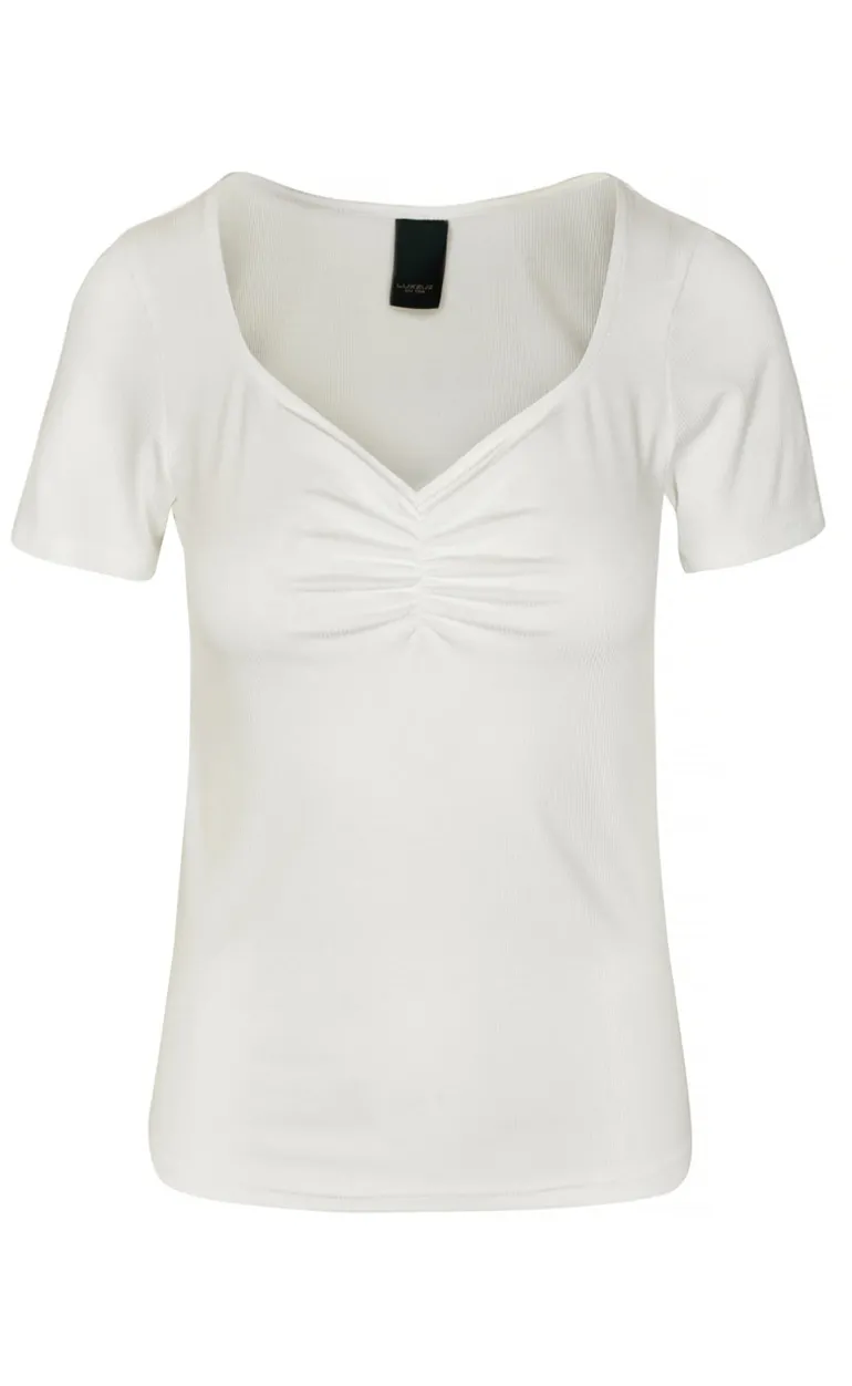 Sød t-shirt fra Luxzuz i hvid i en ribbet kvalitet.
