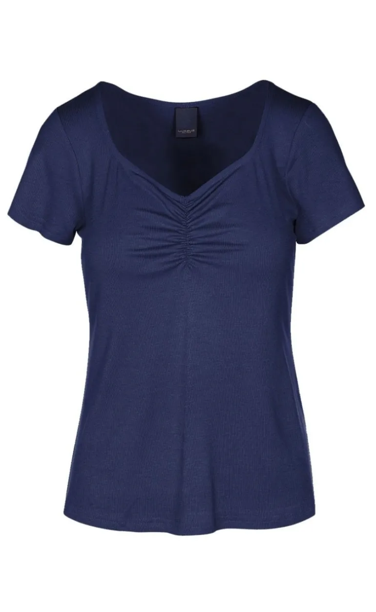 Sød t-shirt fra Luxzuz i mørke blå i en ribbet kvalitet.