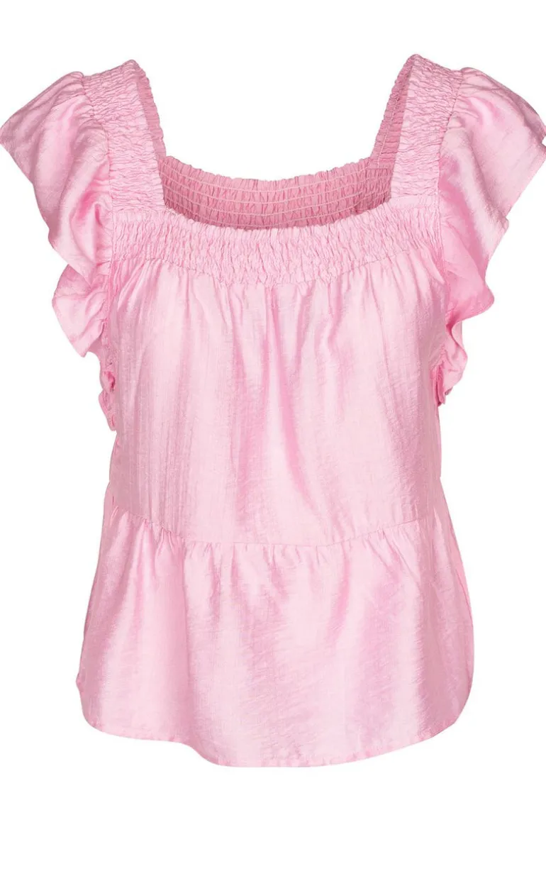 Elegant og feminin top i en flot lyserød farve med flæsedetaljer fra Luxzuz. Perfekt til både hverdag og festlige anledninger.