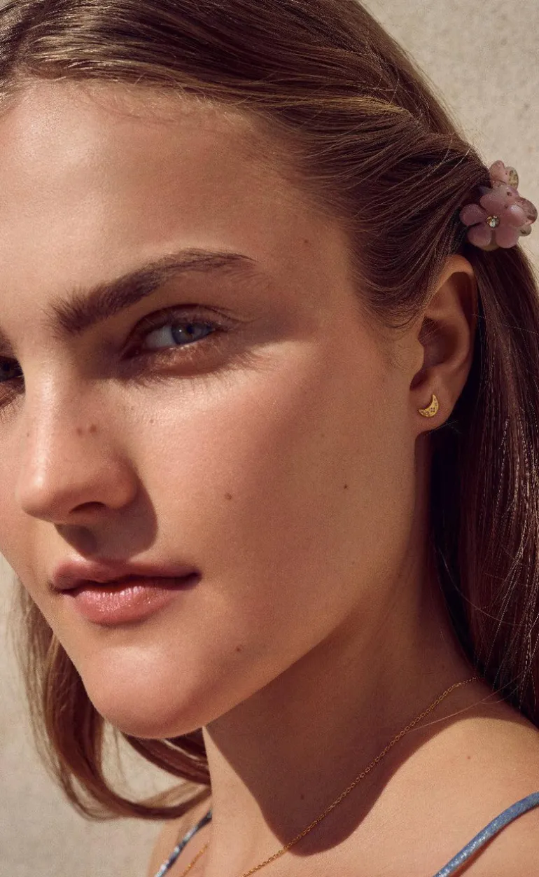 Smukke Maanesten øreringe i forgyldt. Formet som måner, med små cirkoner.