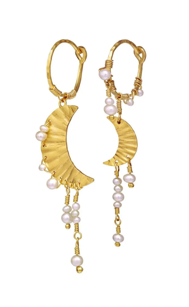 To skønne måne øreringe udsmykket med ferskvandsperler – fra Maanesten. Inspireret af frost dråber om natten.