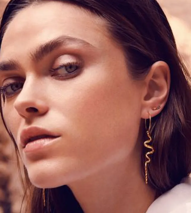 Simple Maanesten øreringe i guld, med et slange inspireret design.