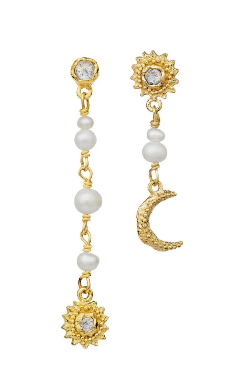 Smukke Maanesten øreringe i guld – inspireret af månen og solen.
