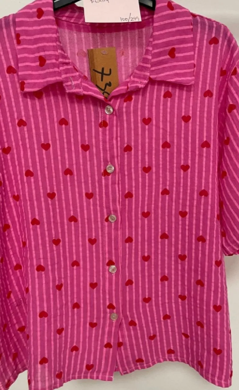 Sød bluse fra Marta Du Chateau i pink, med røde hjerter.