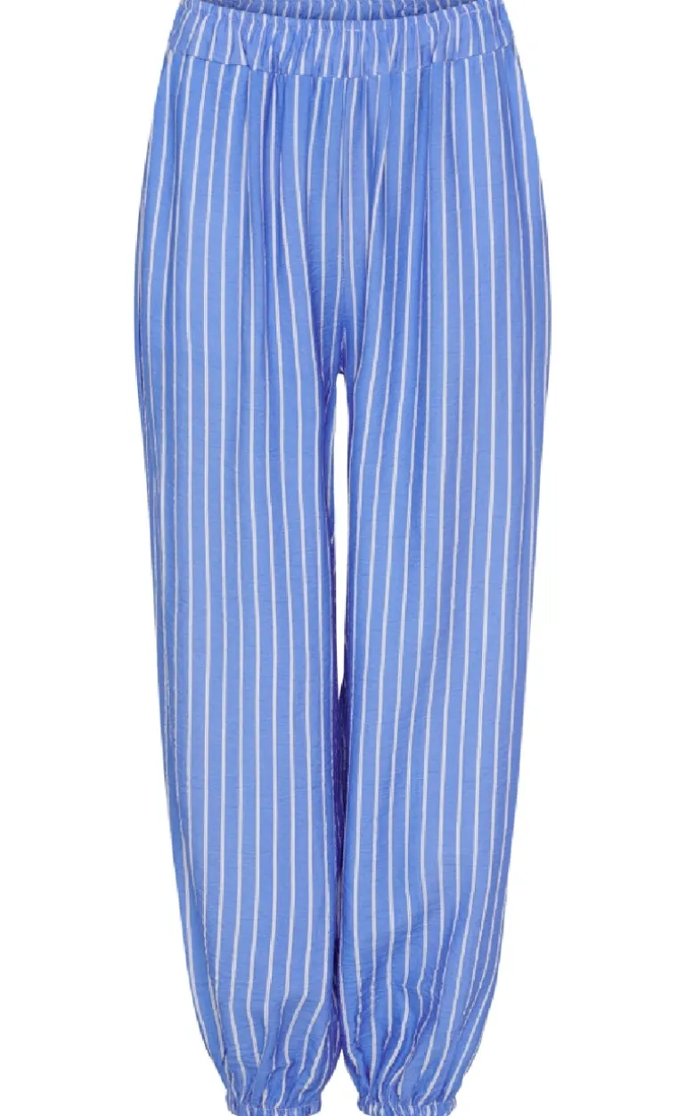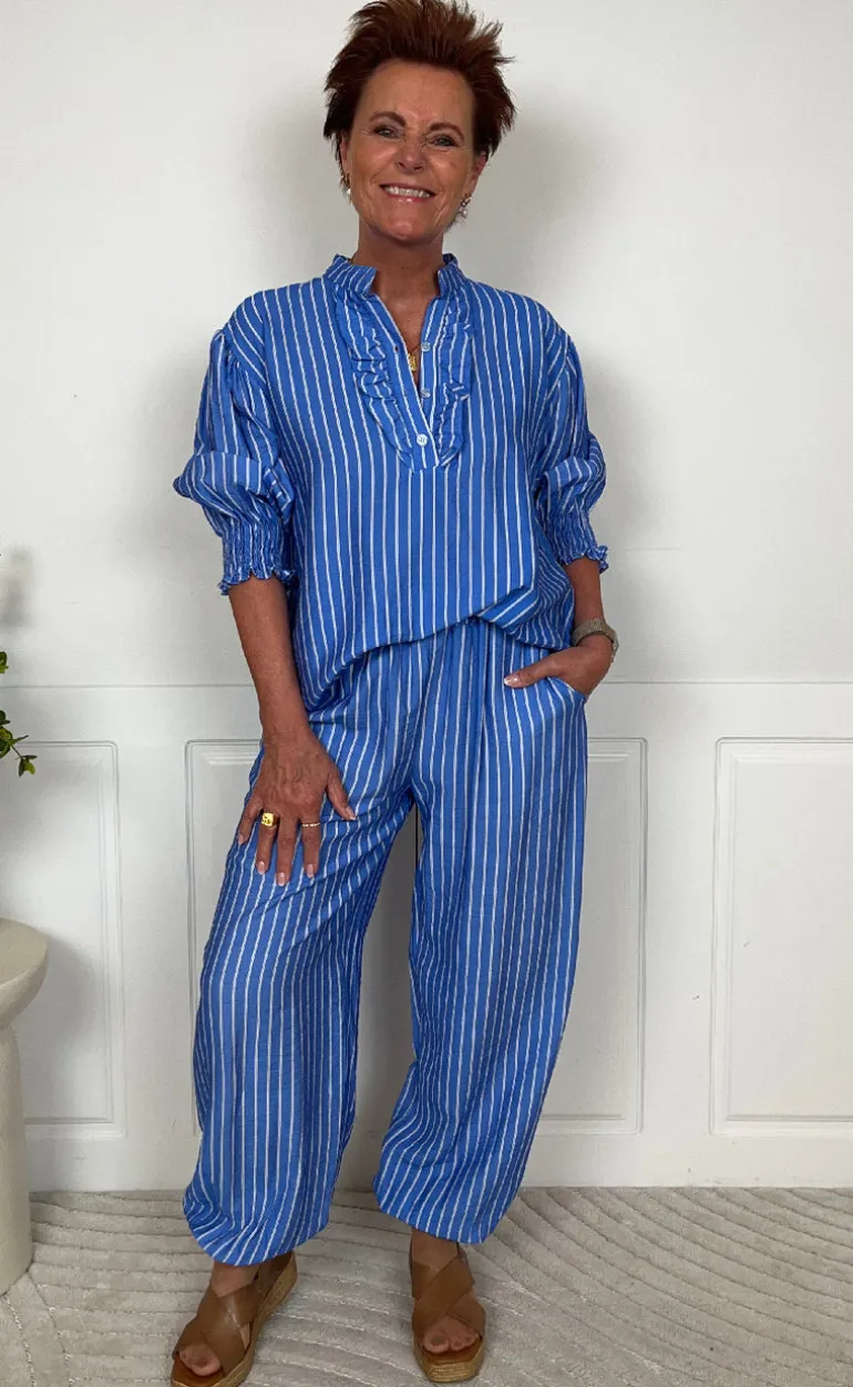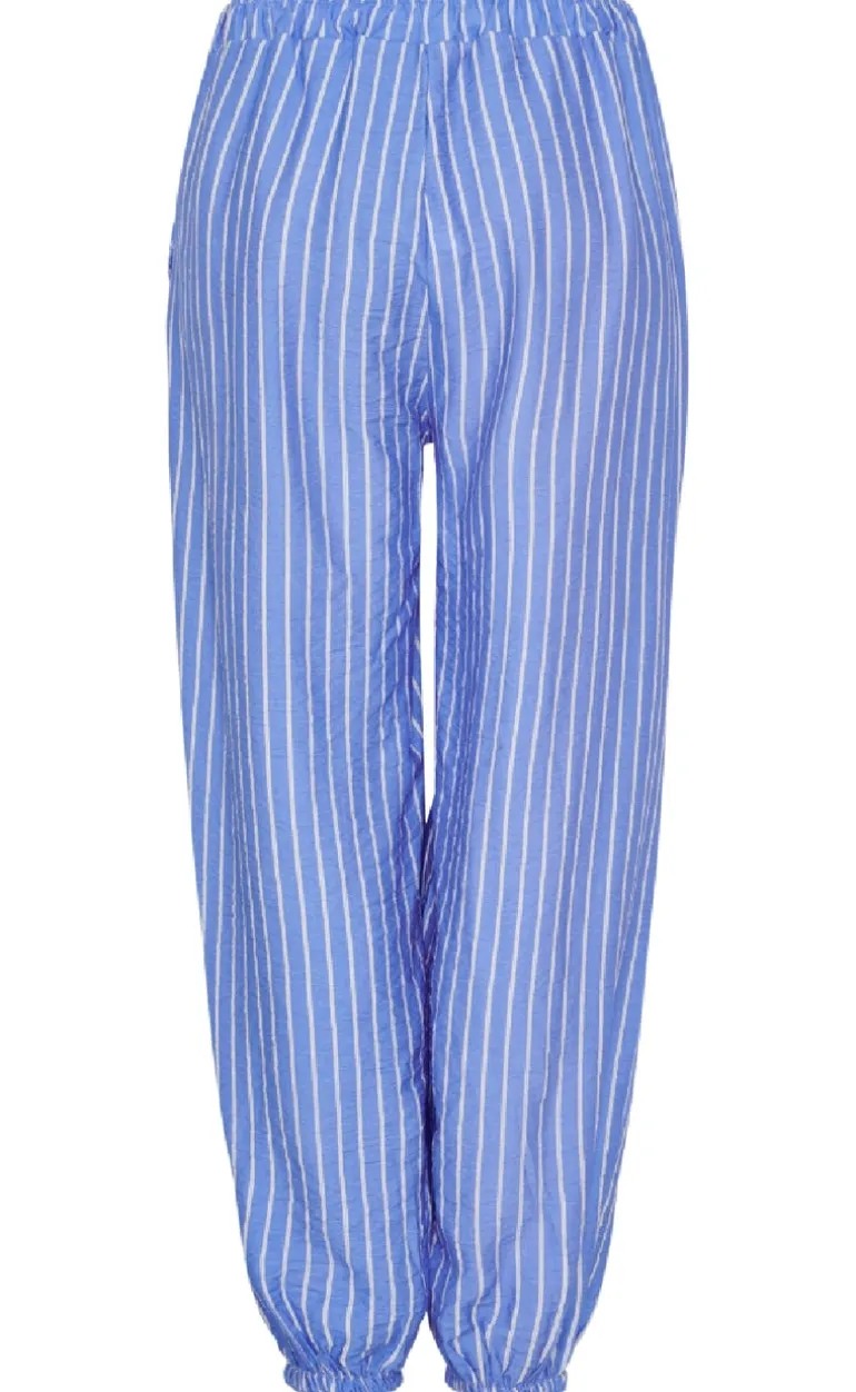 Behagelige bukser fra Marta Du Chateau i et blå stribet print.