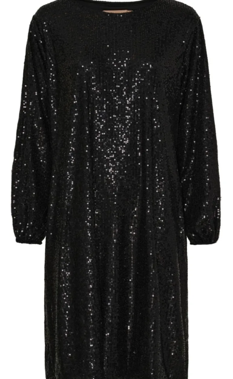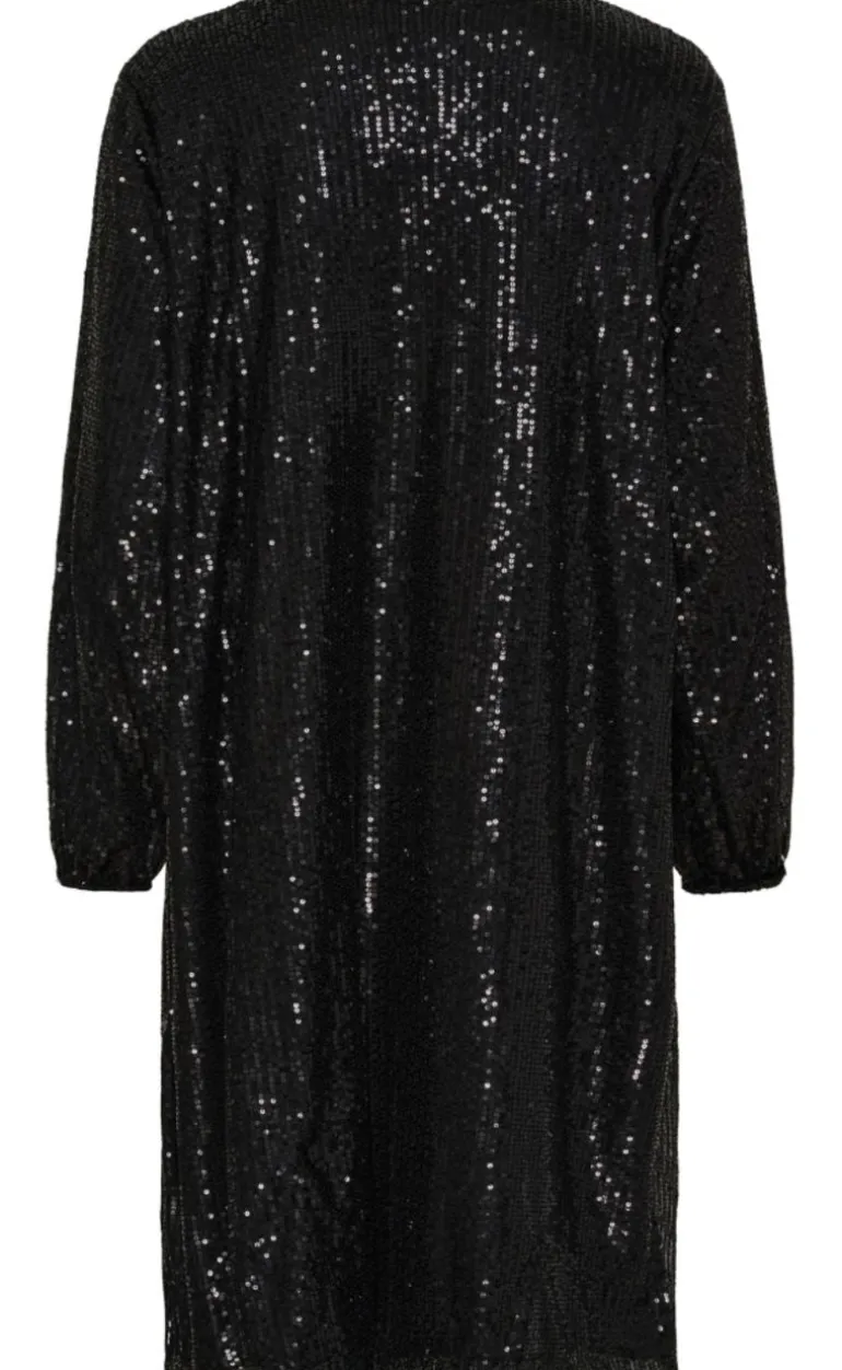 Pæn lang kort kjole. Denne kjole er sort og har palietter.