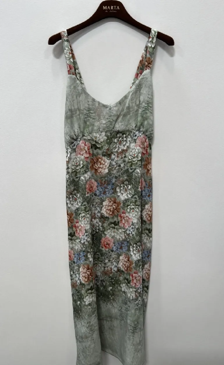 Kjolen har tynde stropper og en skæringen under brystet.