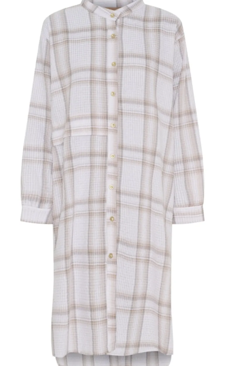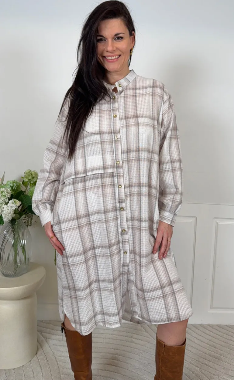 Skjorte kjole fra Marta Du Chateau i et beige stribet print.