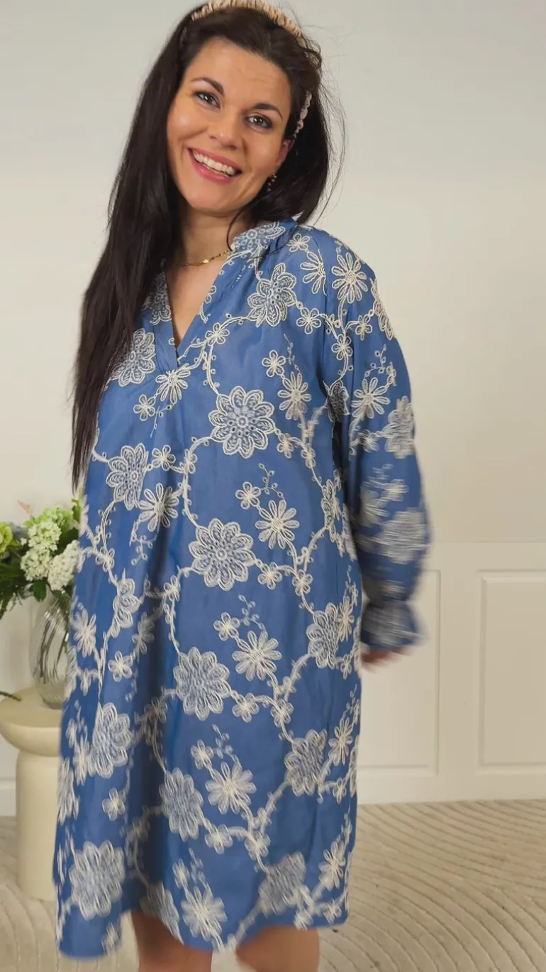 Lækker luftig kjole i blå.