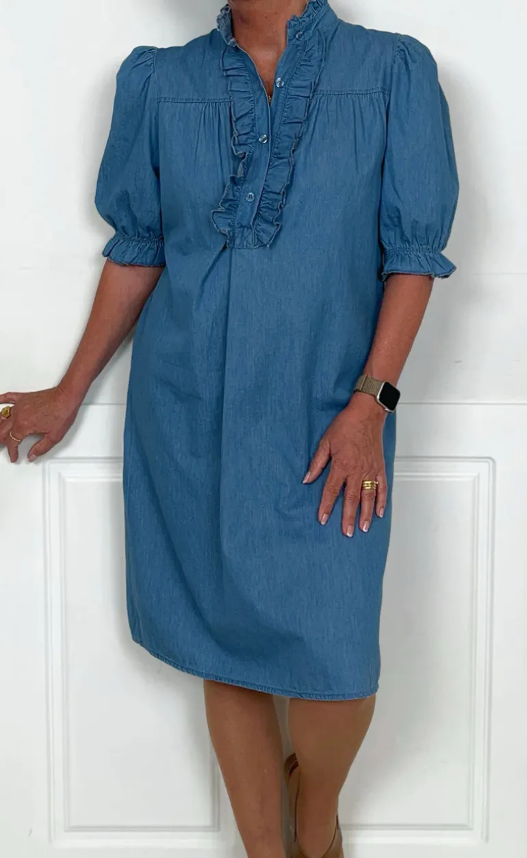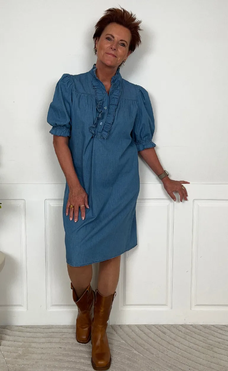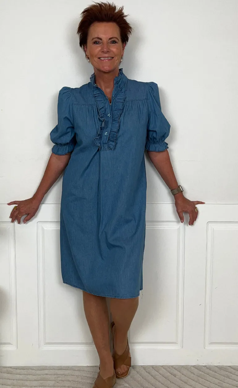 Lækker midi kjole fra Marta Du Chateau i blå, med mange fine detaljer.