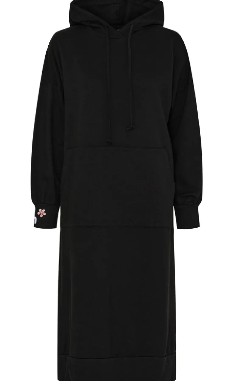 Afslappet kjole fra Marta Du Chateau i sort, med et flot motiv på ryggen.