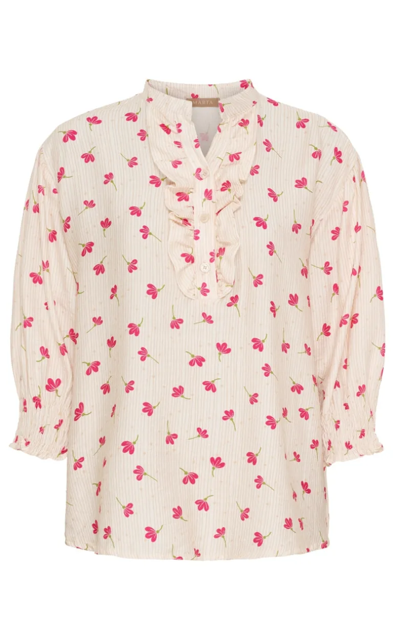 Sød og feminin skjorte fra Marta Du Chateau i et stribet mønster, med broderi detaljer.