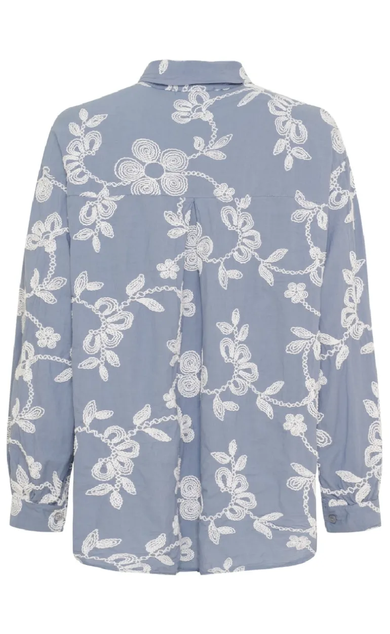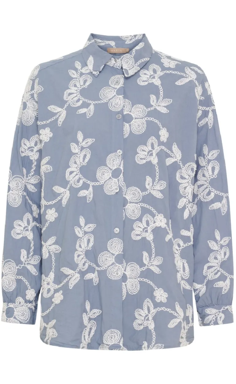 Sød og feminin skjorte fra Marta Du Chateau i blå med fine broderi detaljer.