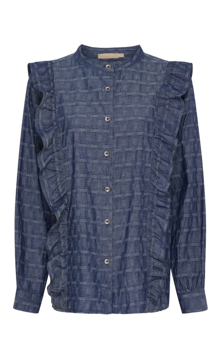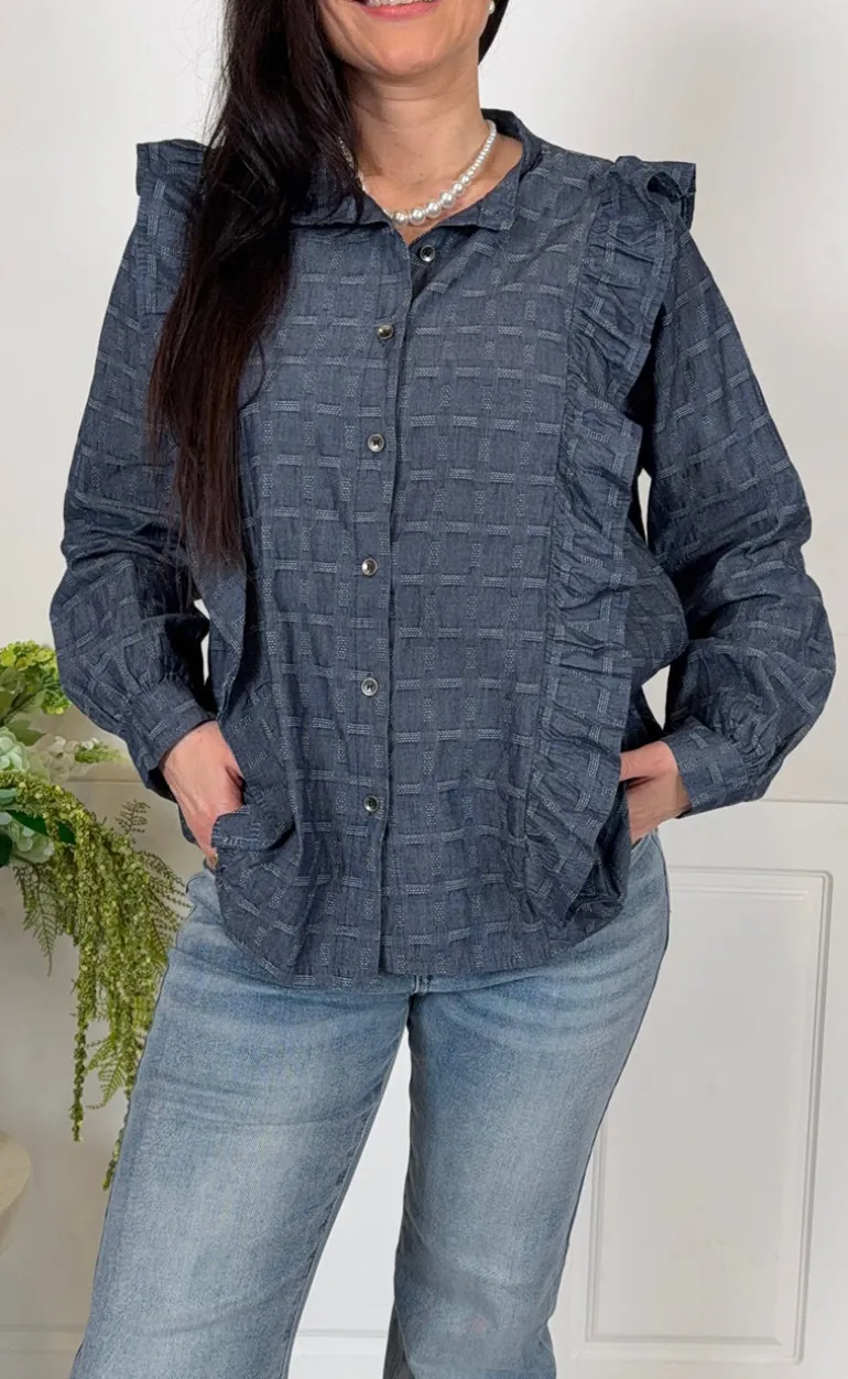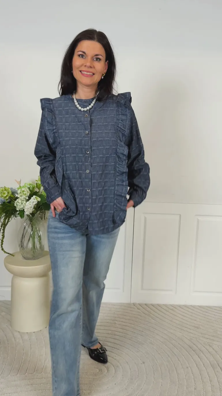 Skjorten har flæsedetaljer.