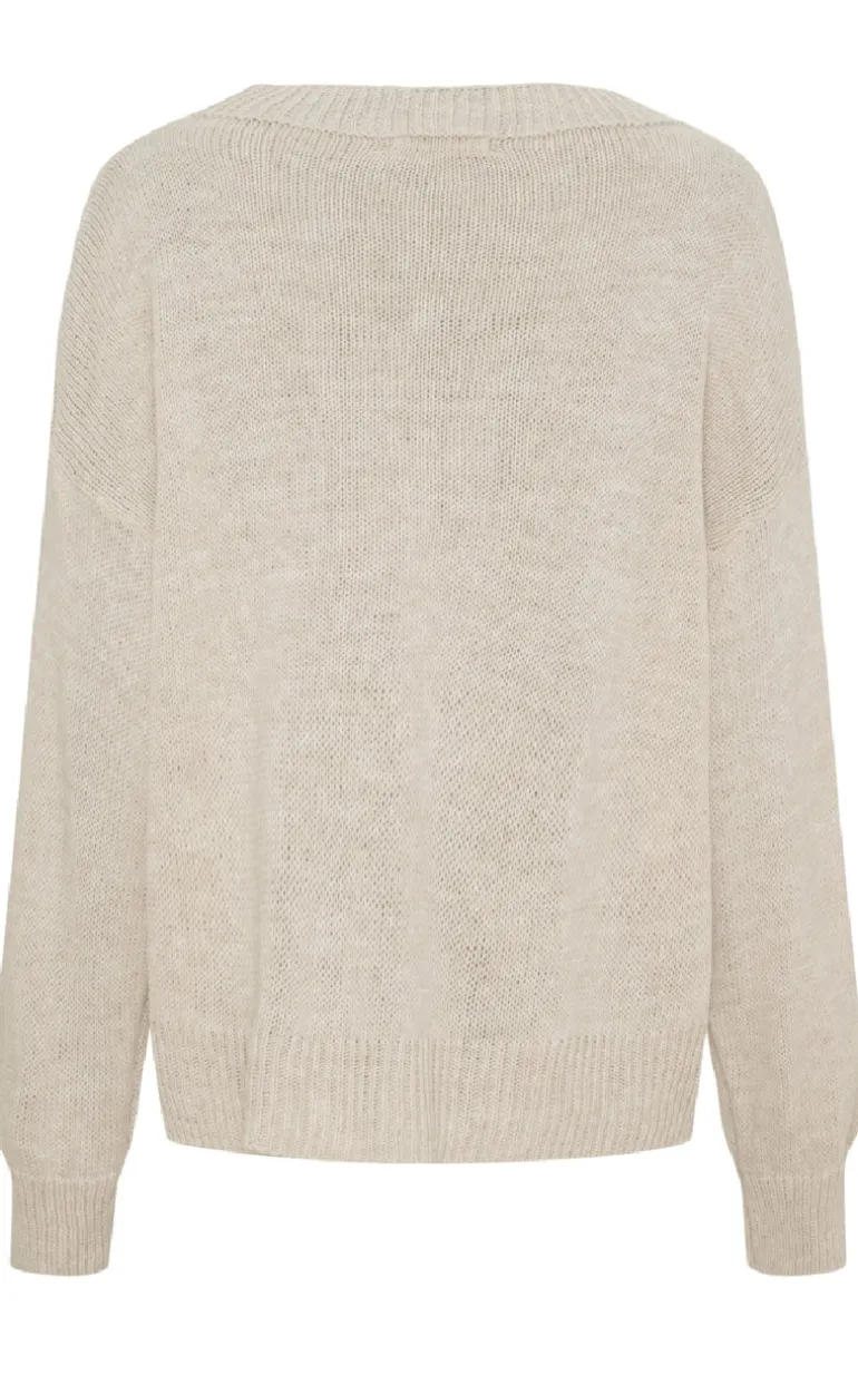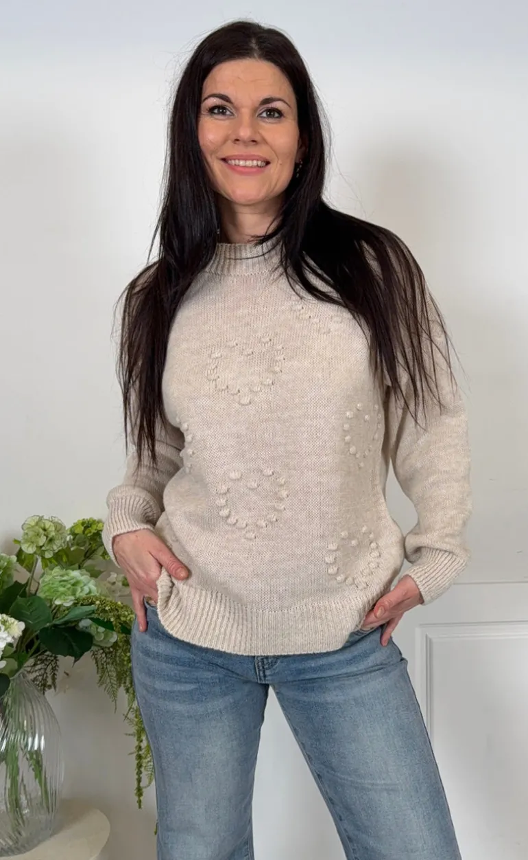 Fin striktrøje fra Marta Du Chateau i beige med hjerte detaljer.