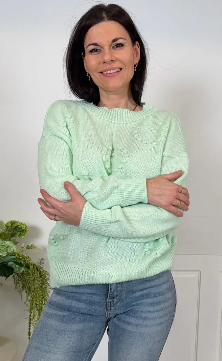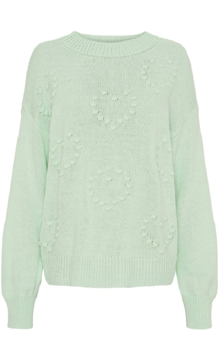 Fin striktrøje fra Marta Du Chateau i en smuk grøn farve med hjerte detaljer.