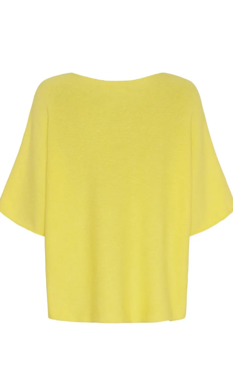 Blusen har brede ærmer, en rund hals samt en løs pasform.