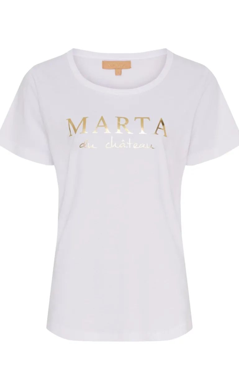 Sød t-shirt fra Marta Du Chateau i hvid, med guld skrift på brystet.