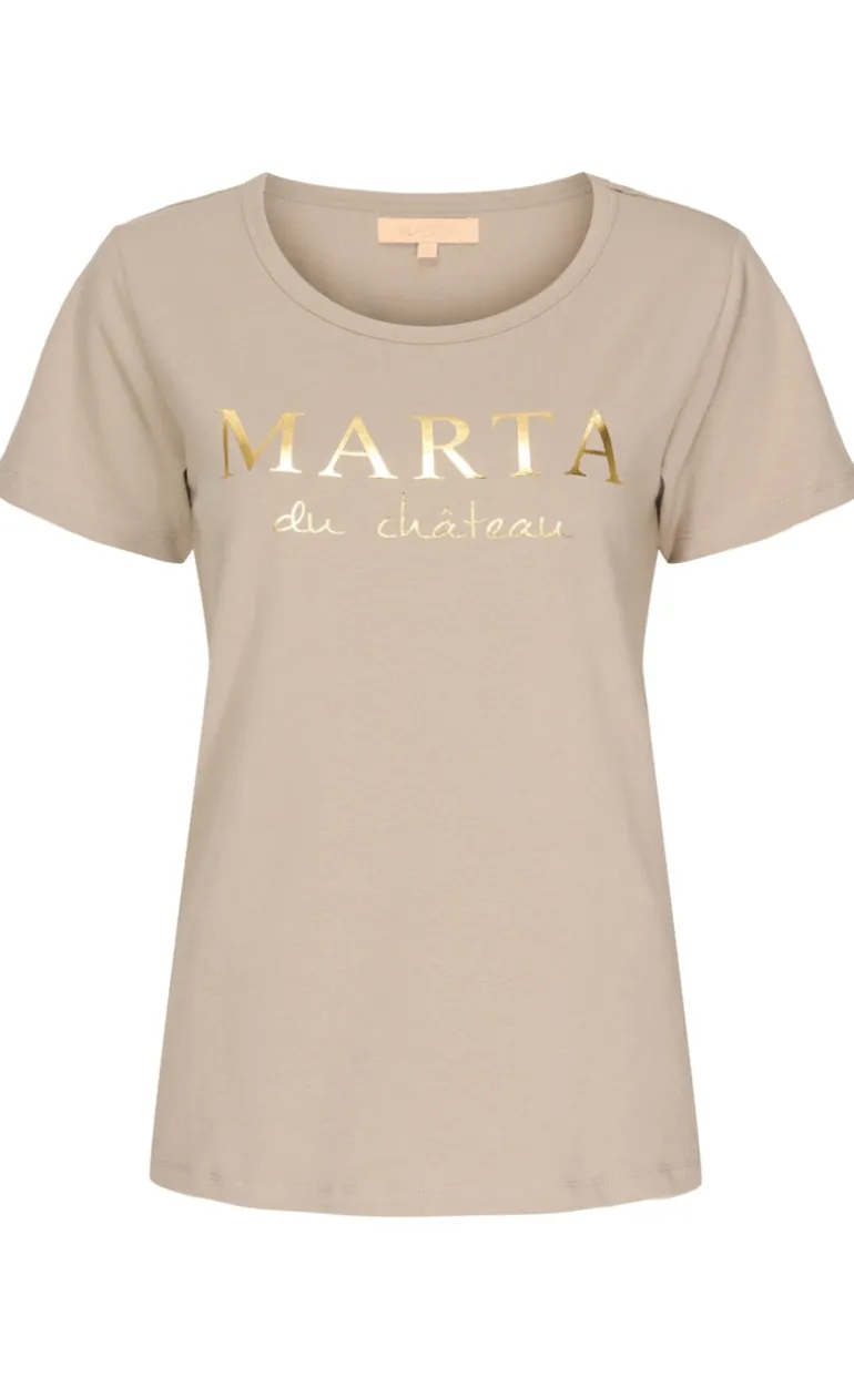 Sød t-shirt fra Marta Du Chateau i beige, med guld skrift på brystet.