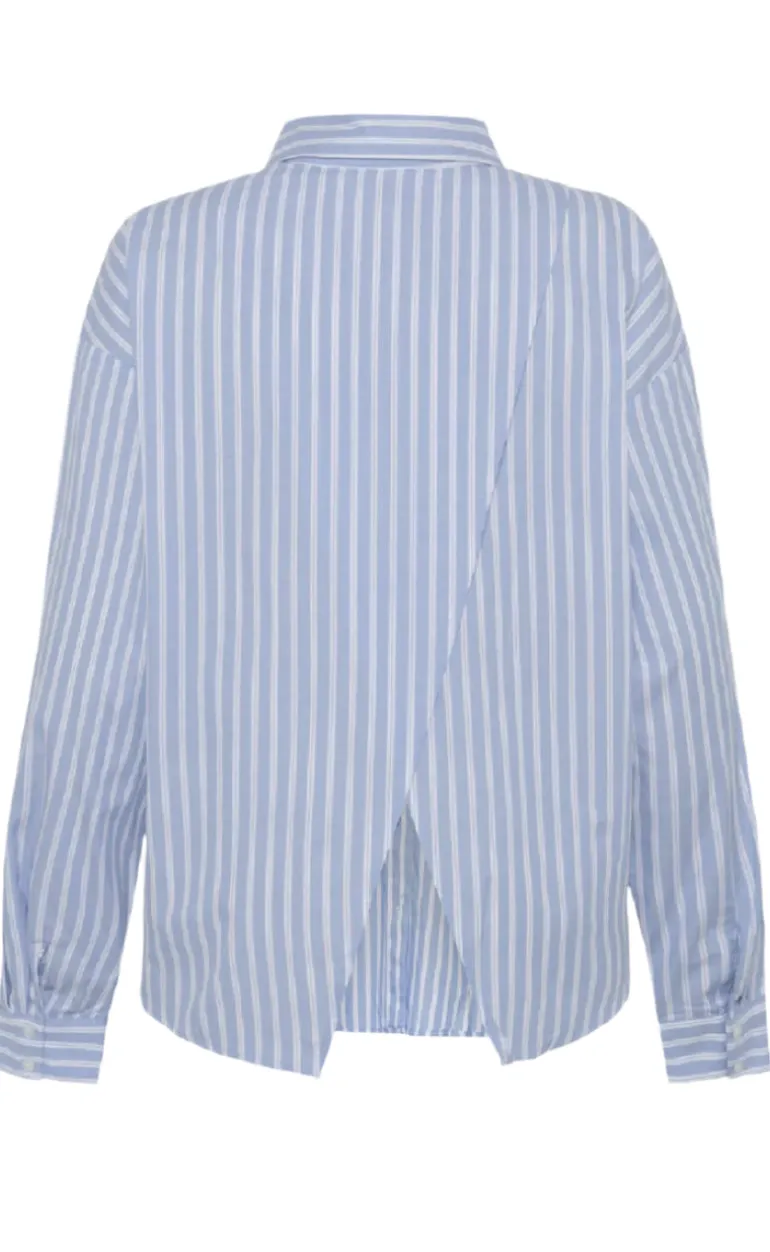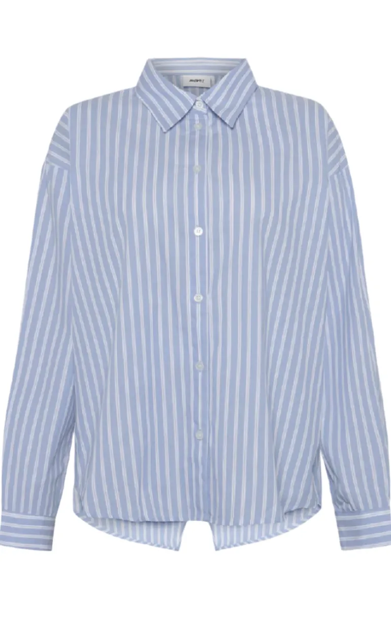 Blå og hvid stribet skjorte fra Moves med et klassisk design med en slids bagpå.
