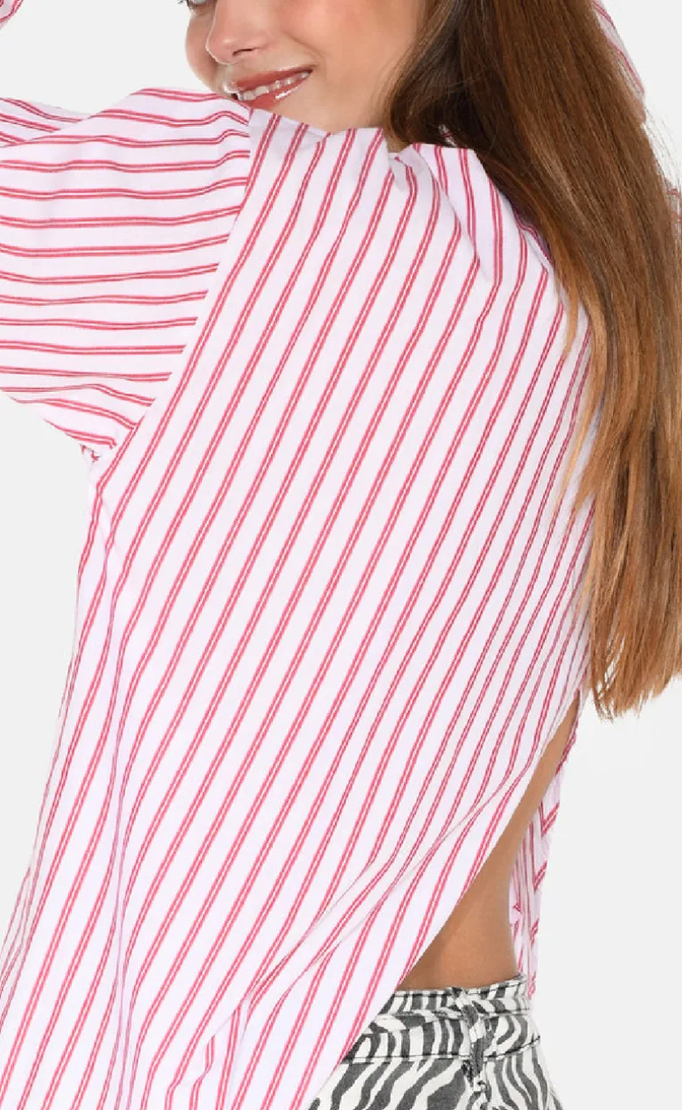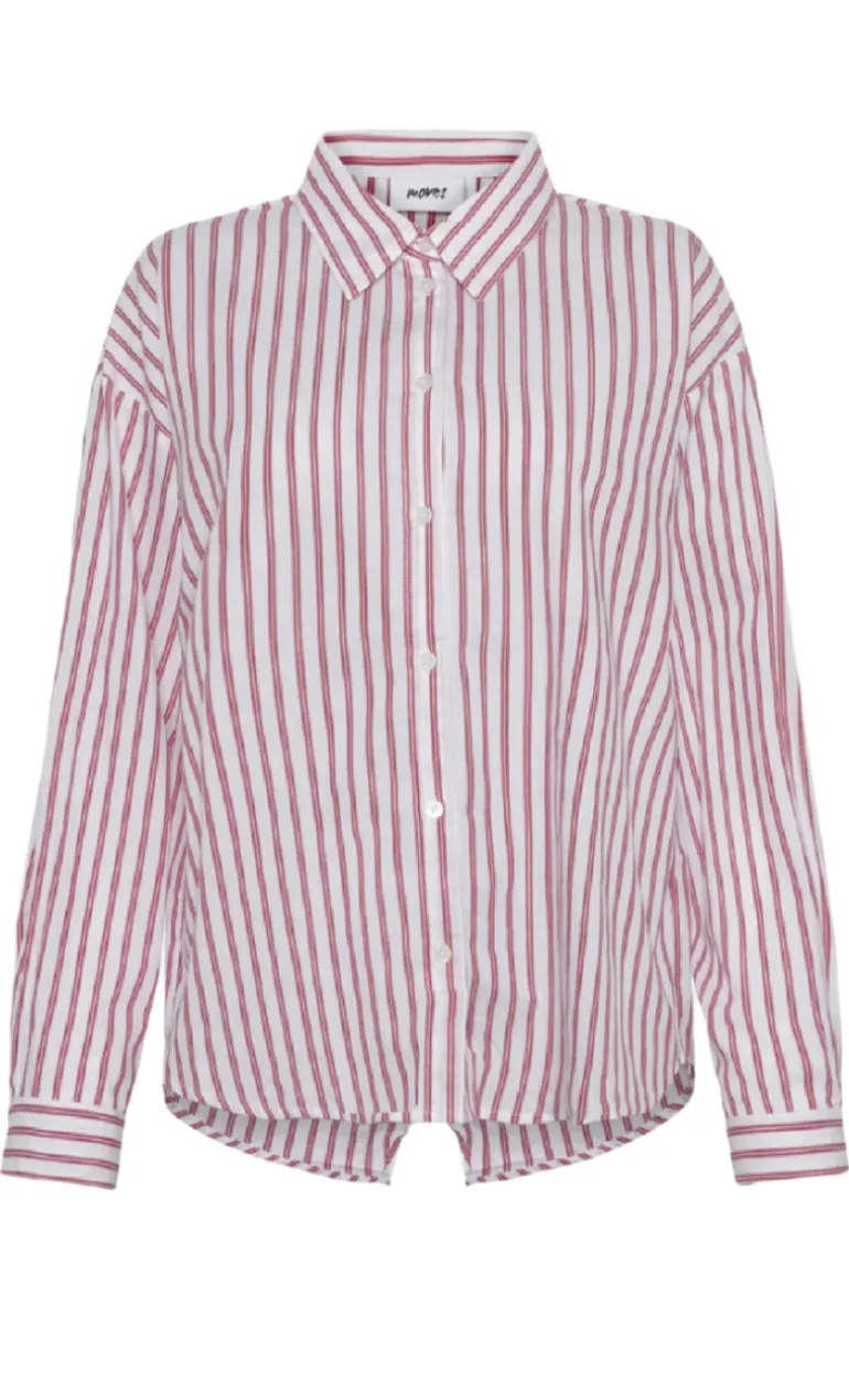 Rød og hvid stribet skjorte fra Moves med et klassisk design med en slids bagpå.