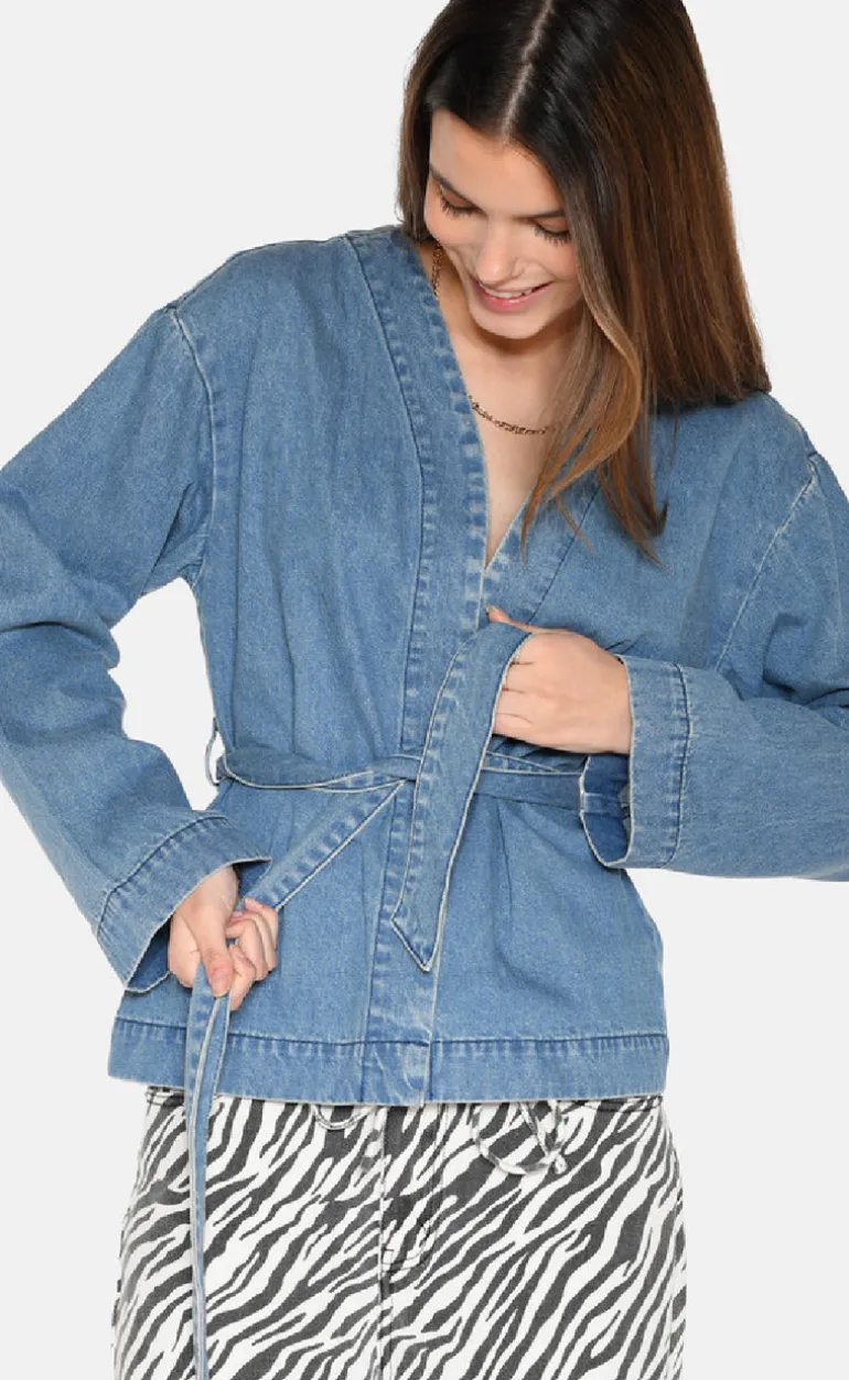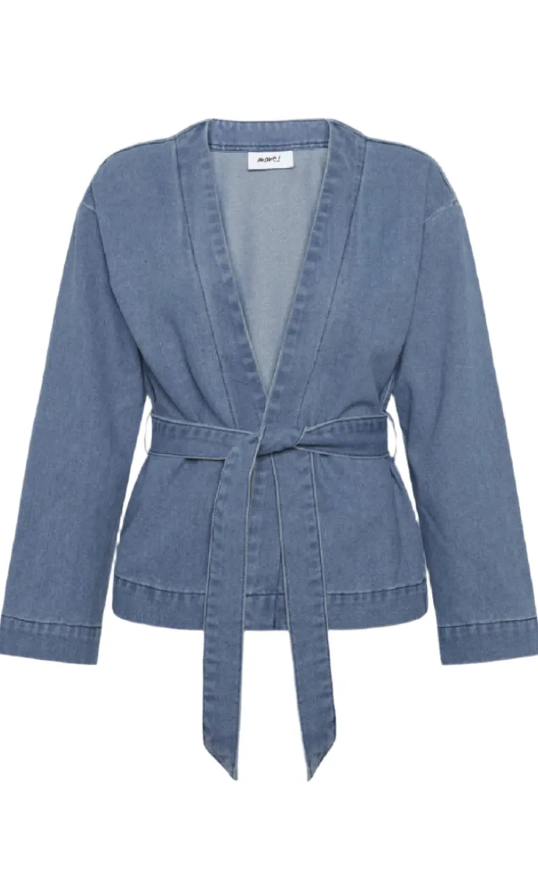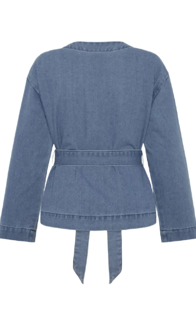 Cool denim skjorte fra Moves i blå, med bindebånd ved taljen.