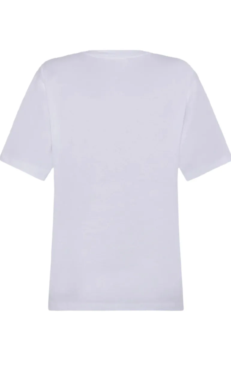 Basic t-shirt fra Moves i hvid, med orange print fortil.