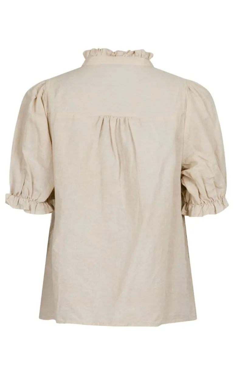 Sød bluse med fine flæse detaljer ved kraven og skulderen.