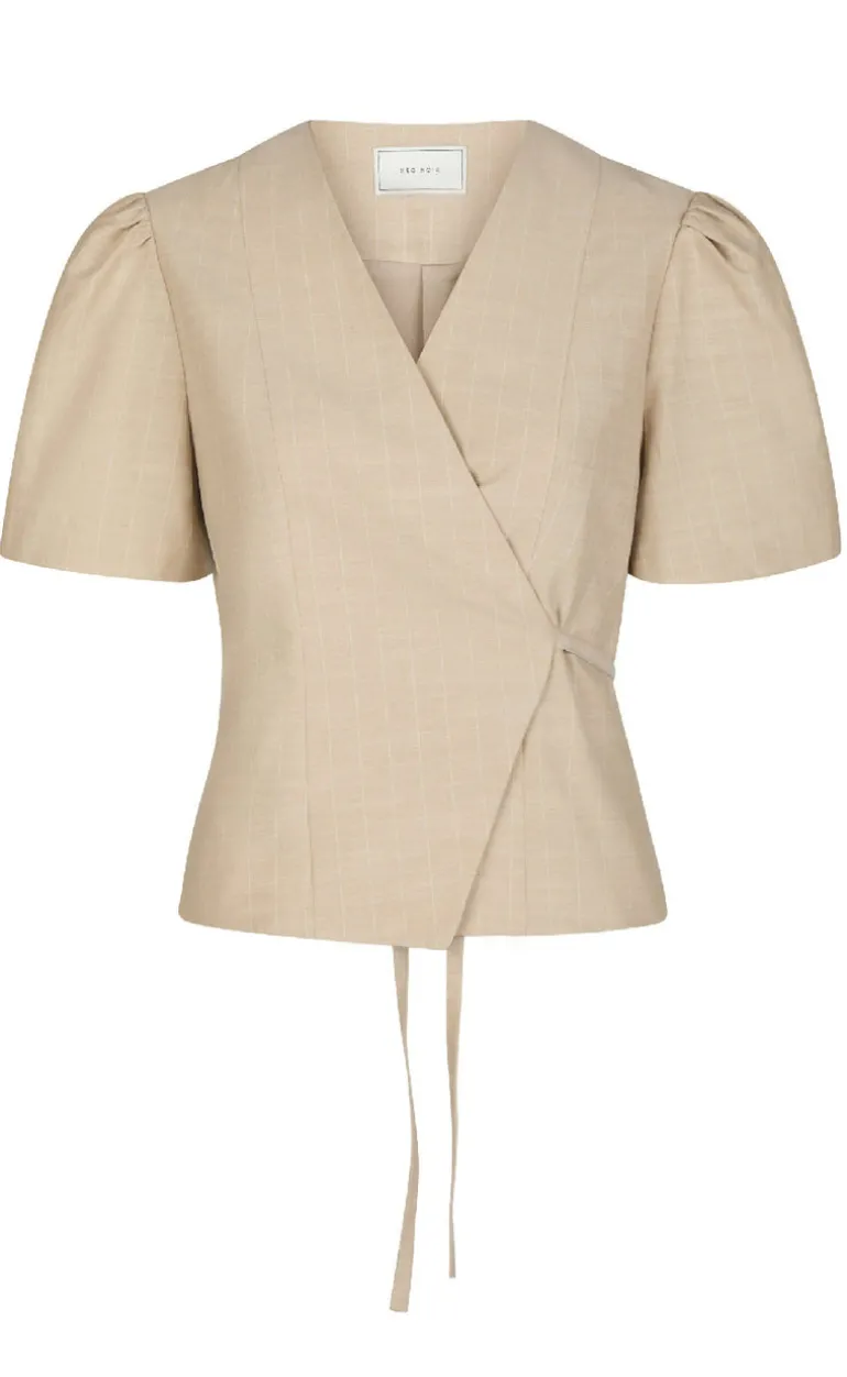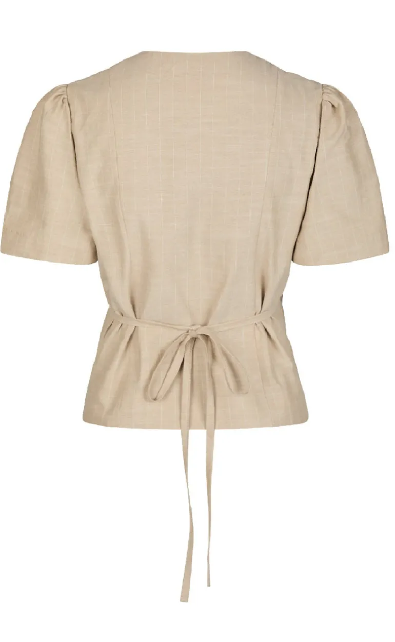 Sød bluse fra Neo Noir beige med bindebånd i taljen.