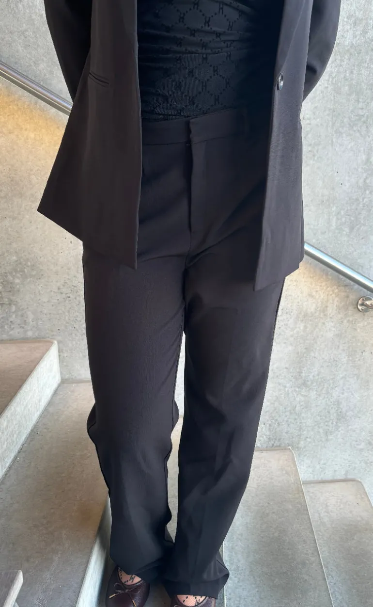 Disse bukser er klassiske suit bukser, med ligeben, to lommer og en lynlås.