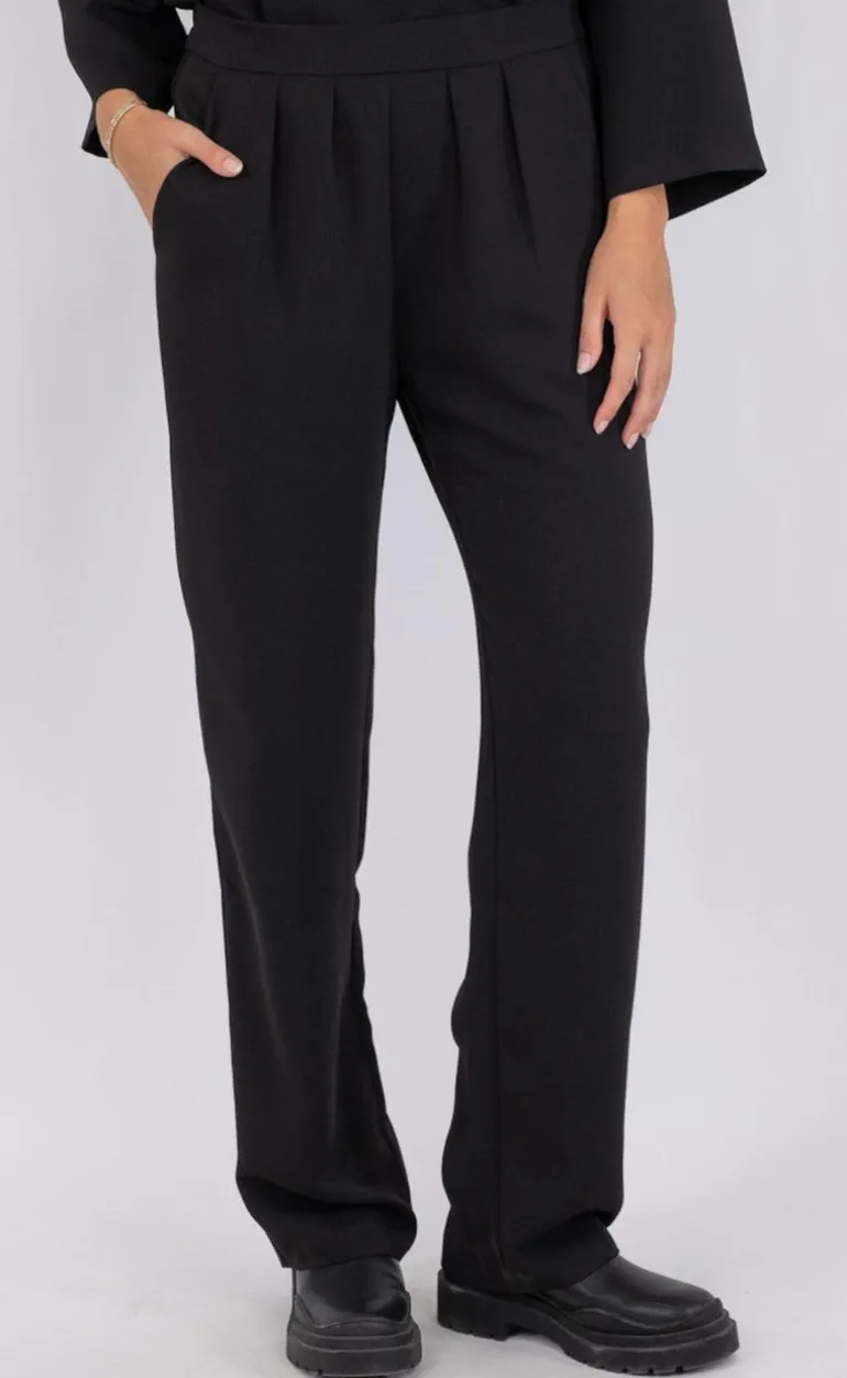 Flotte bukser fra Neo Noir i sort. De har en løs pasform og med brede ben.