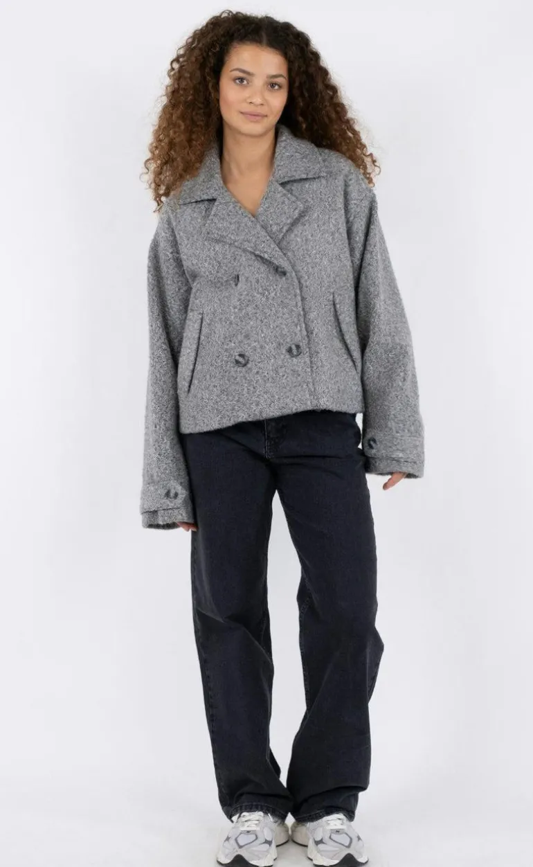 Lækker uld trenchcoat i grå. Jakken lukkes med knapper fortil og er fremstillet i et blødt materiale.