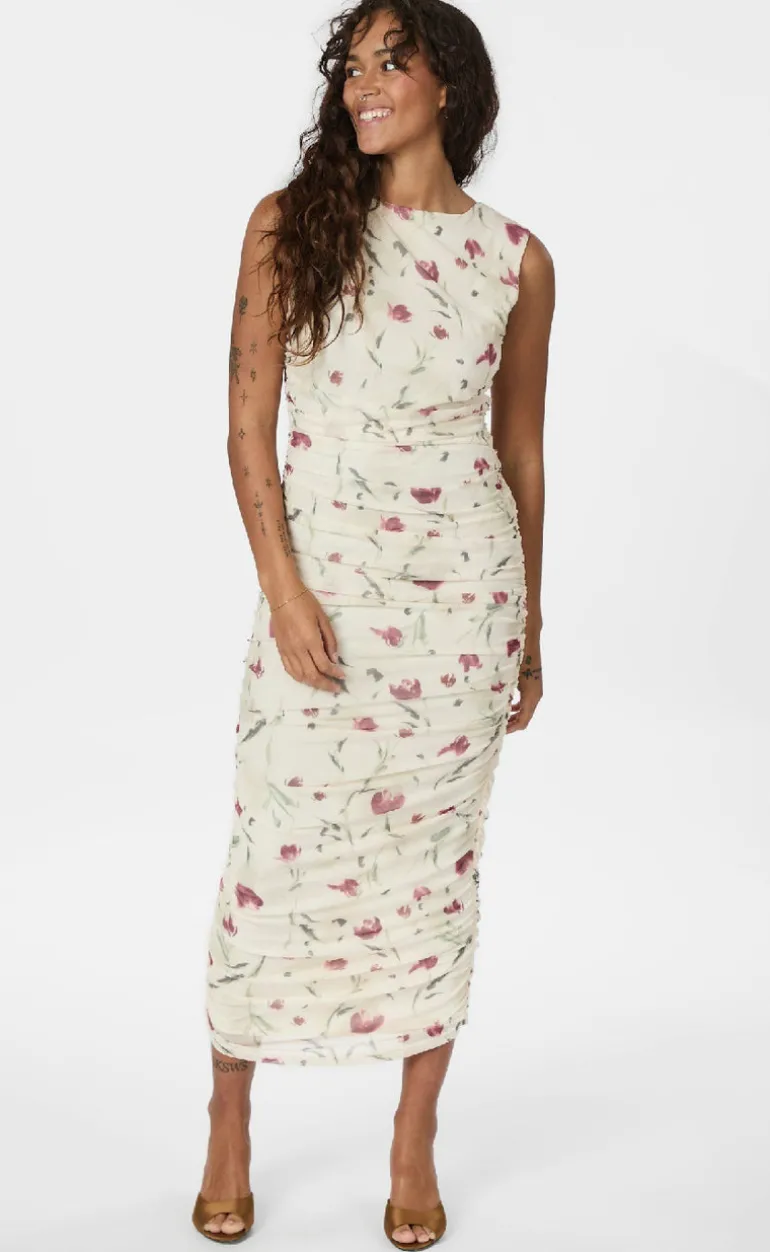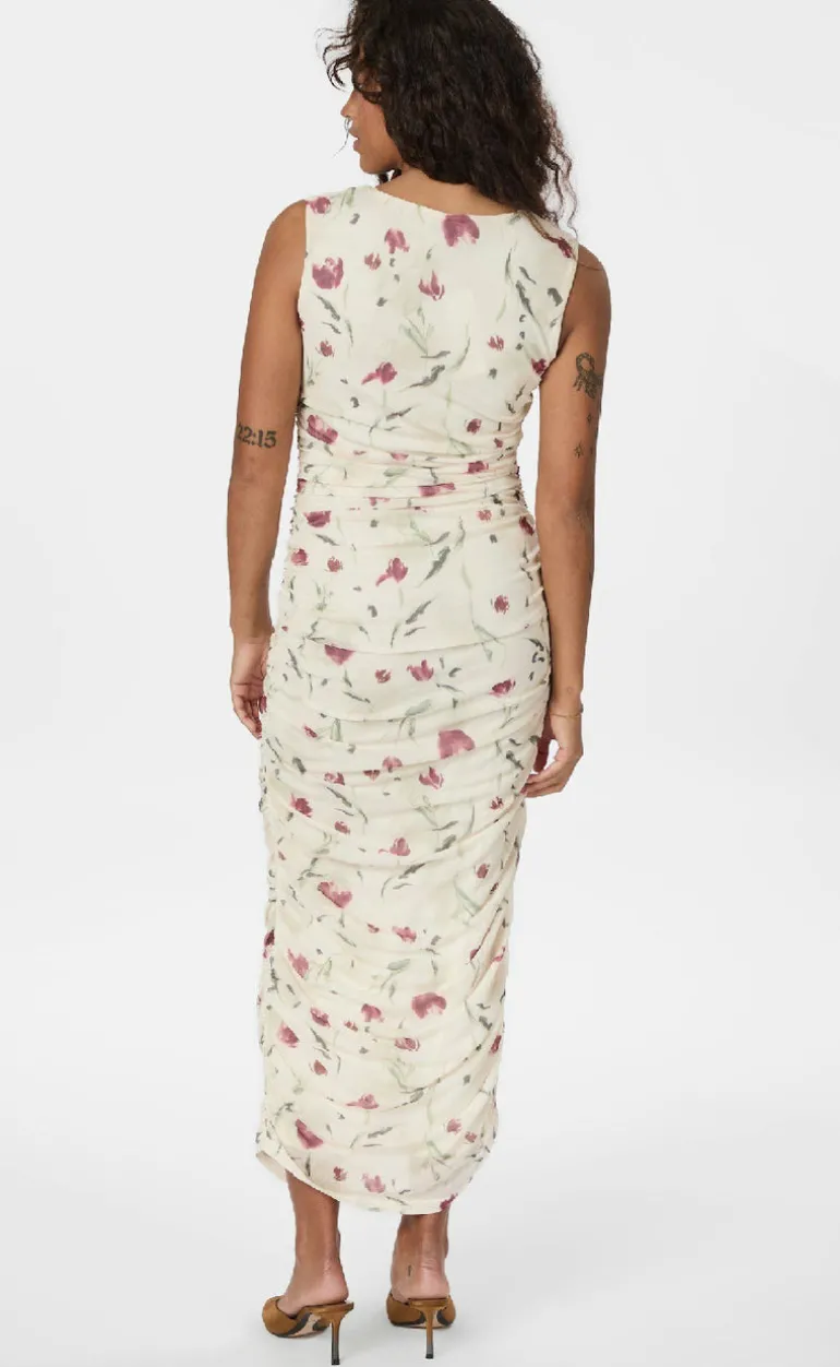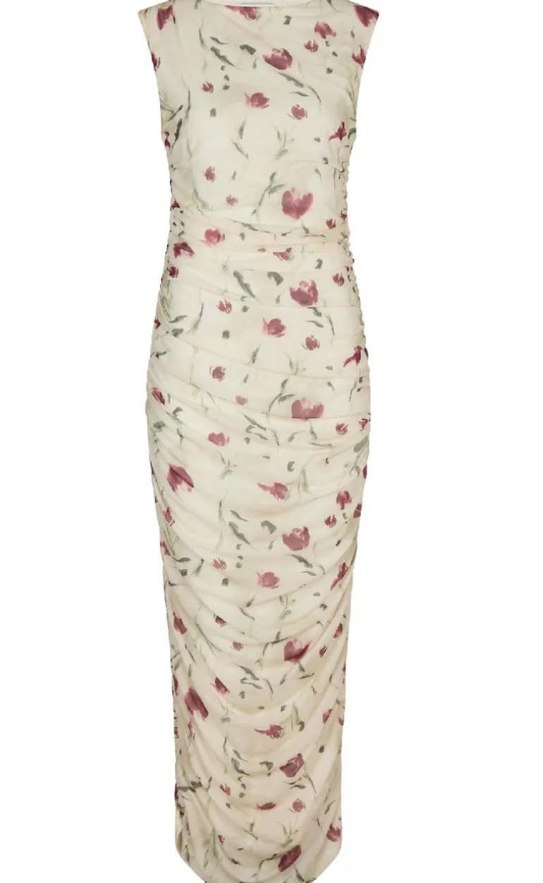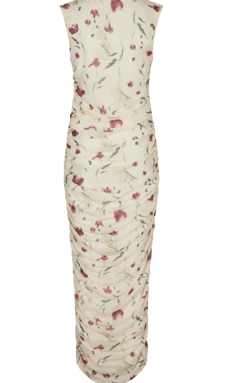 Maxi mesh kjole fra Neo Noir med rynk ned langs sidesømmen og et blomstret print.