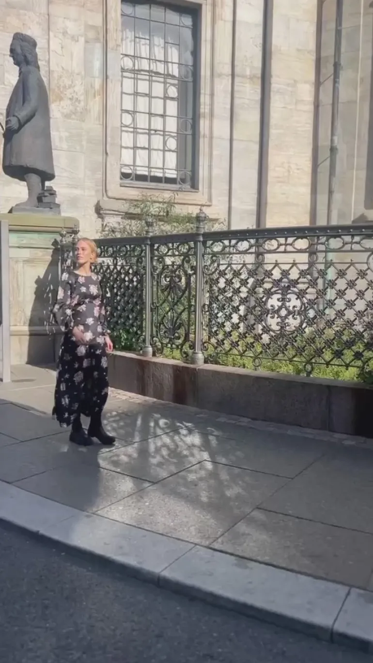 Kjolen har lange ærmer med en smule puf i.