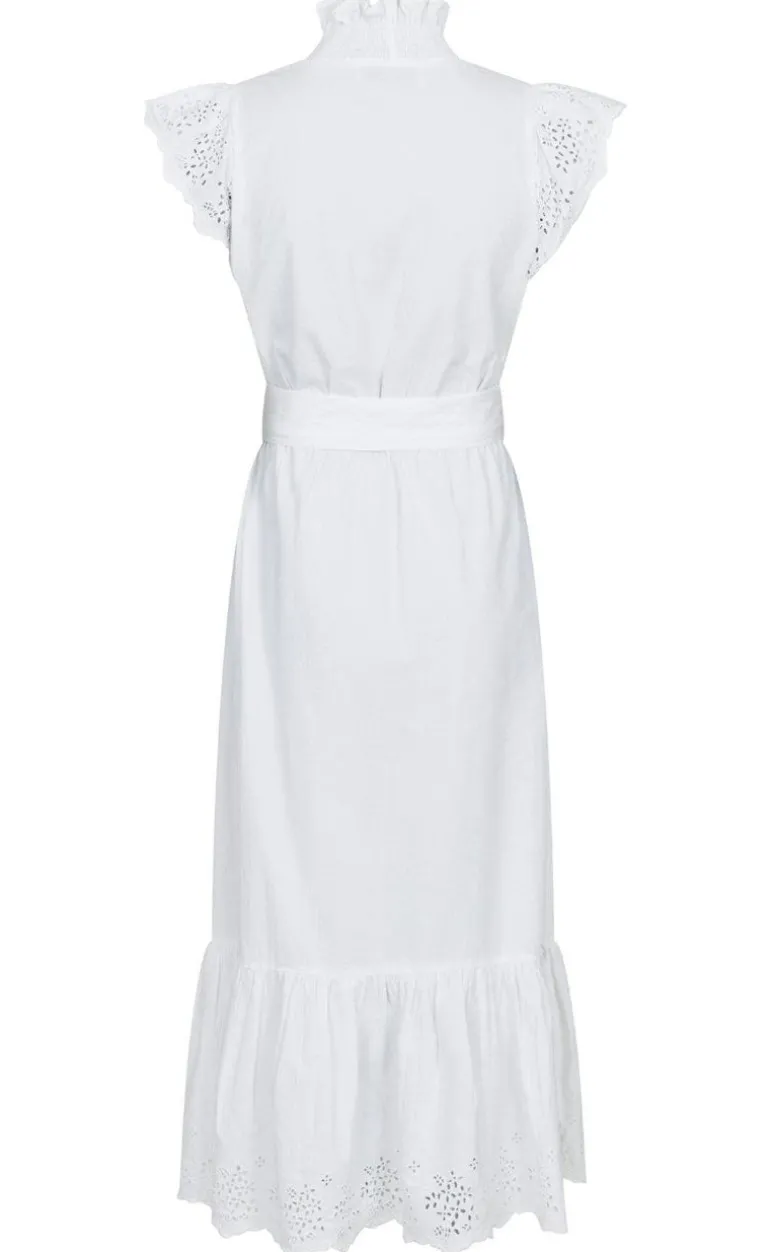 Kjolen har fine broderi anglaise detaljer, en v-hals samt en stor bindesløjfe i taljen.