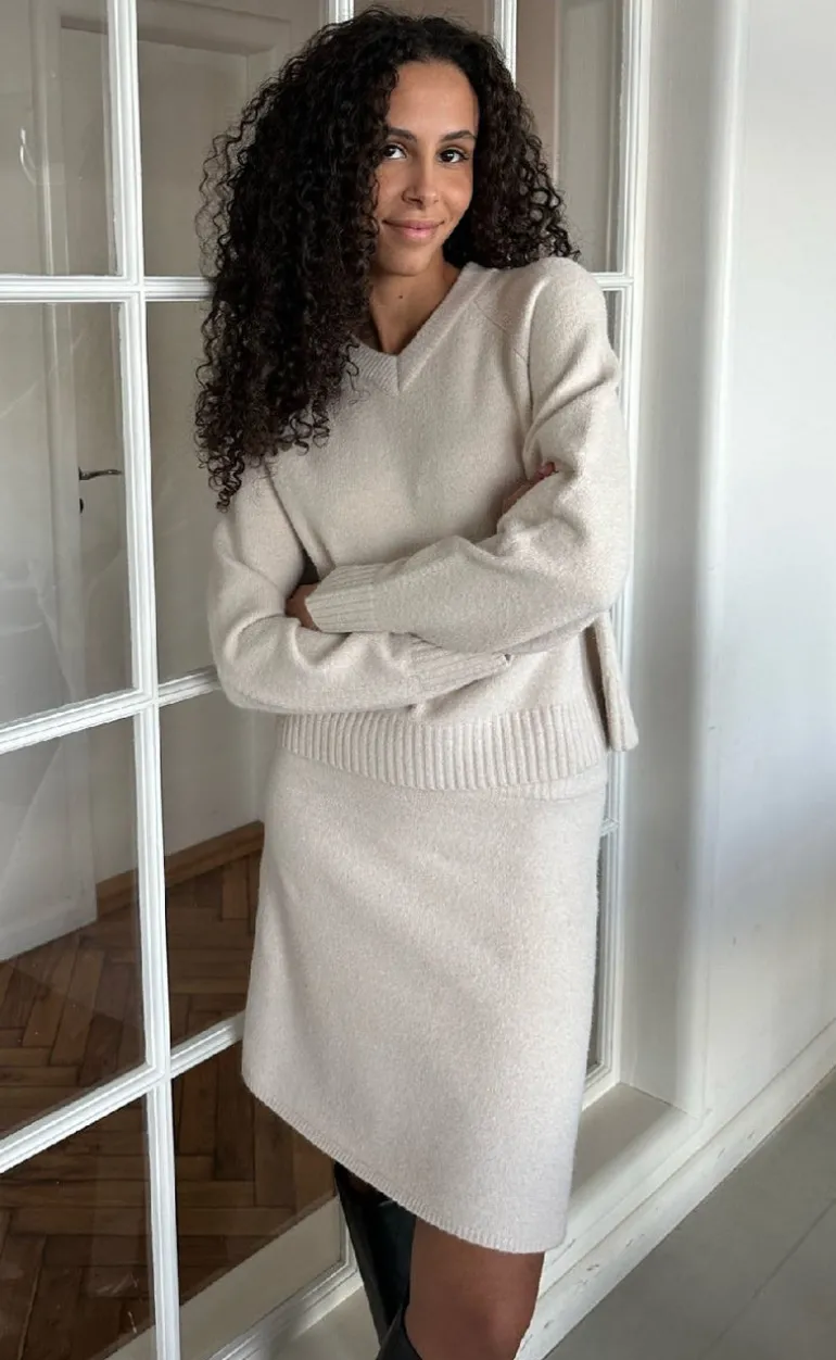 Flot strik nederdel fra Neo Noir i en lys beige farve.