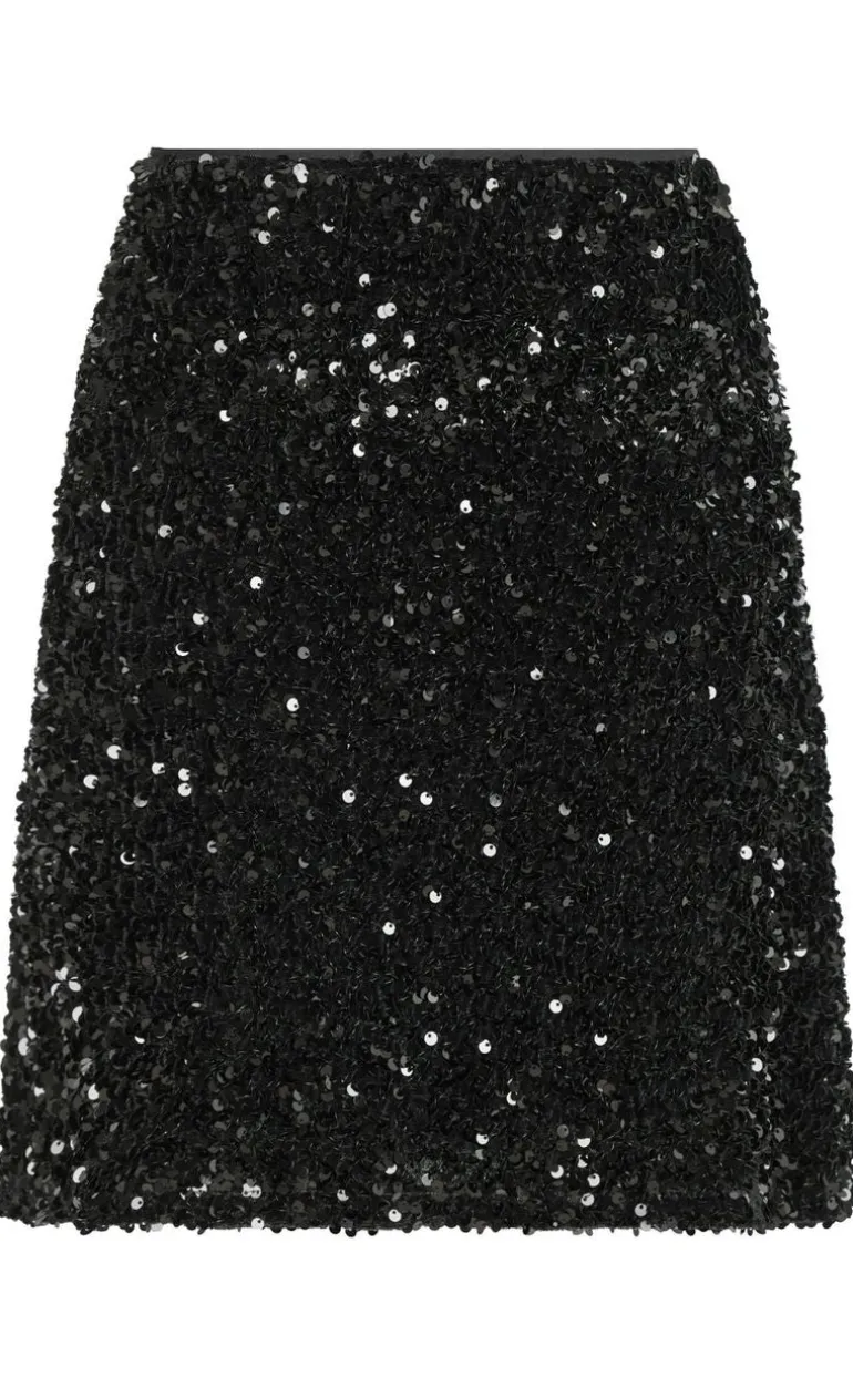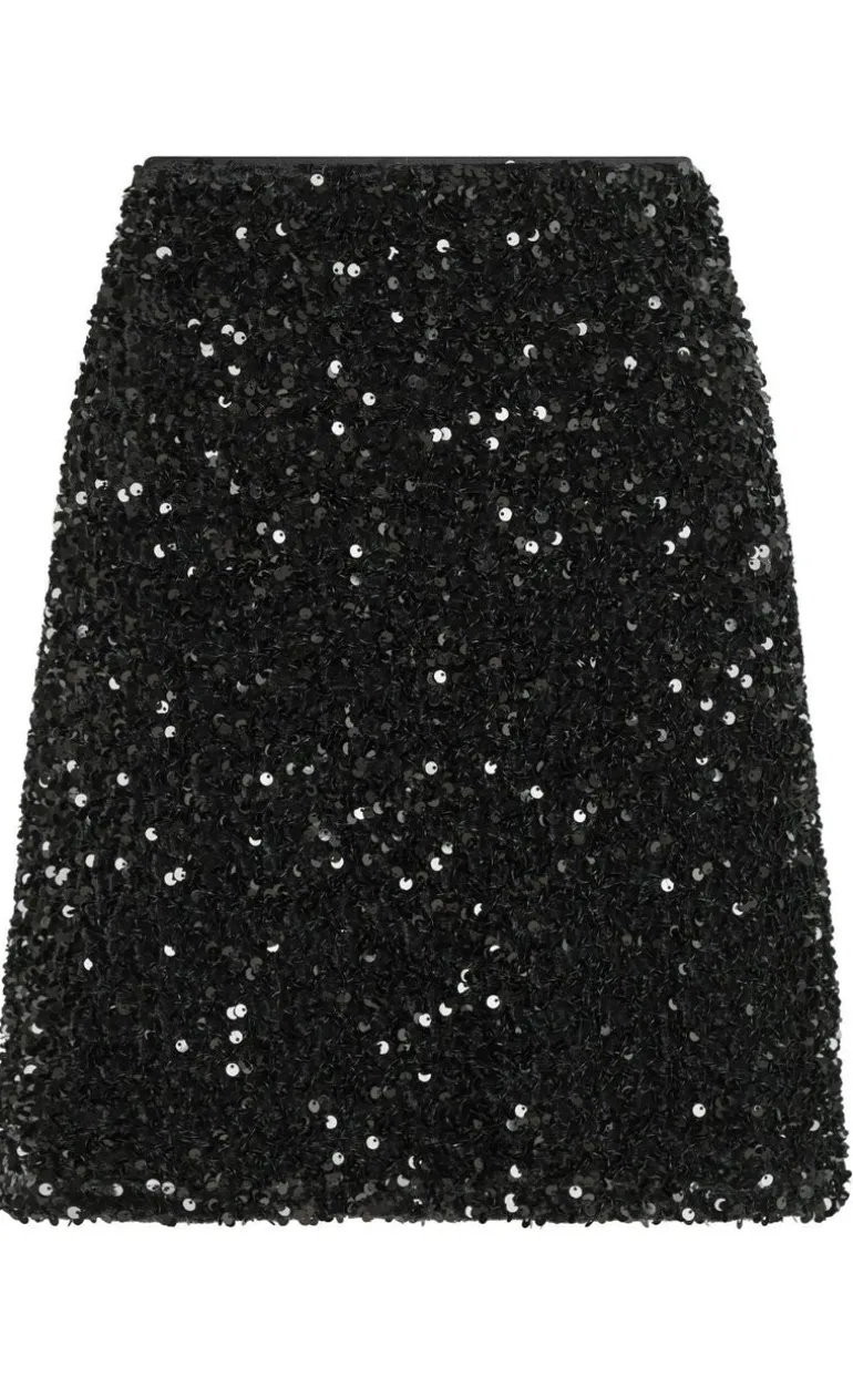 Smuk kort nederdel i sort og med palietter. Nederdelen har elastikbånd i taljen.