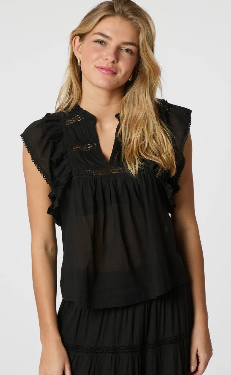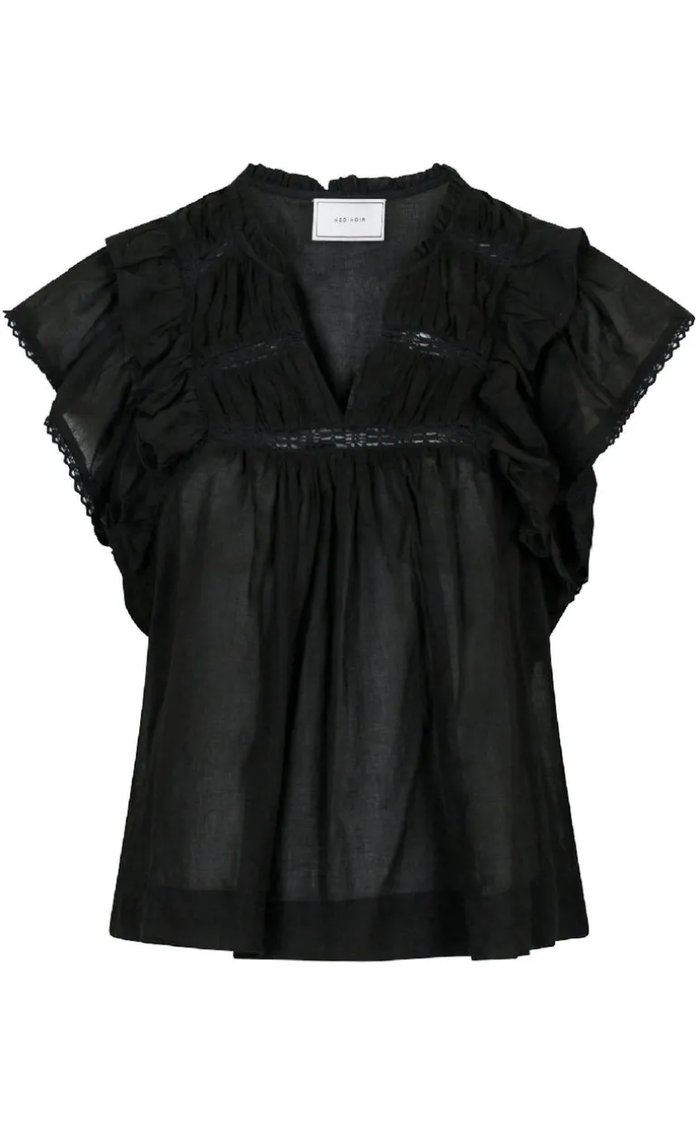 Smuk og populær top fra Neo Noir i sort, med flæser og indsatte bånd.