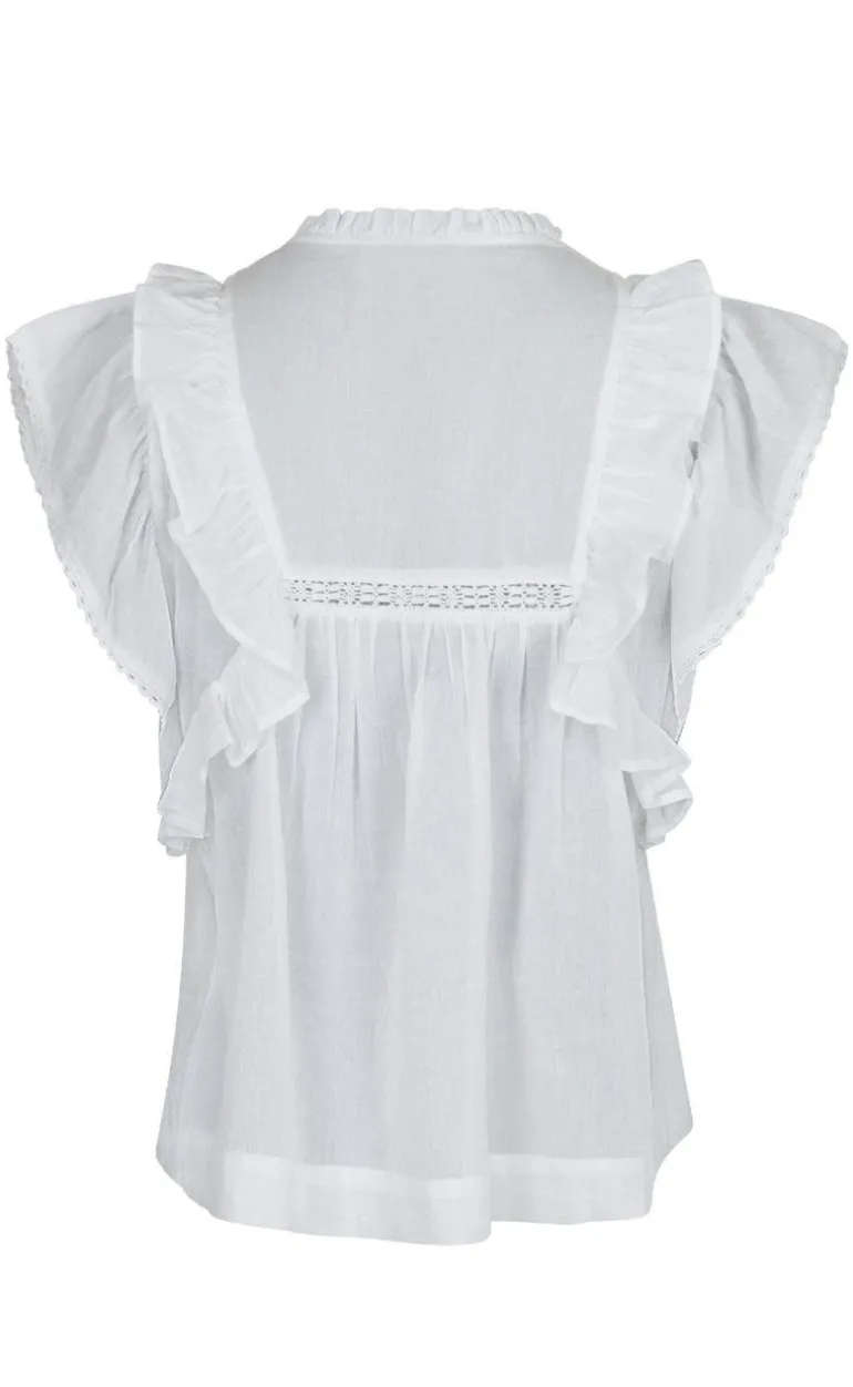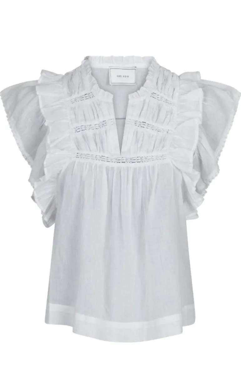 Smuk og populær top fra Neo Noir i hvid, med flæser og indsatte bånd.