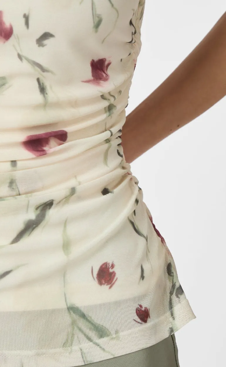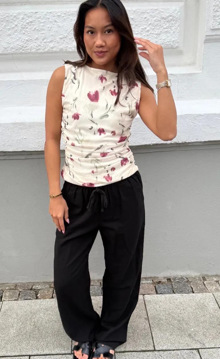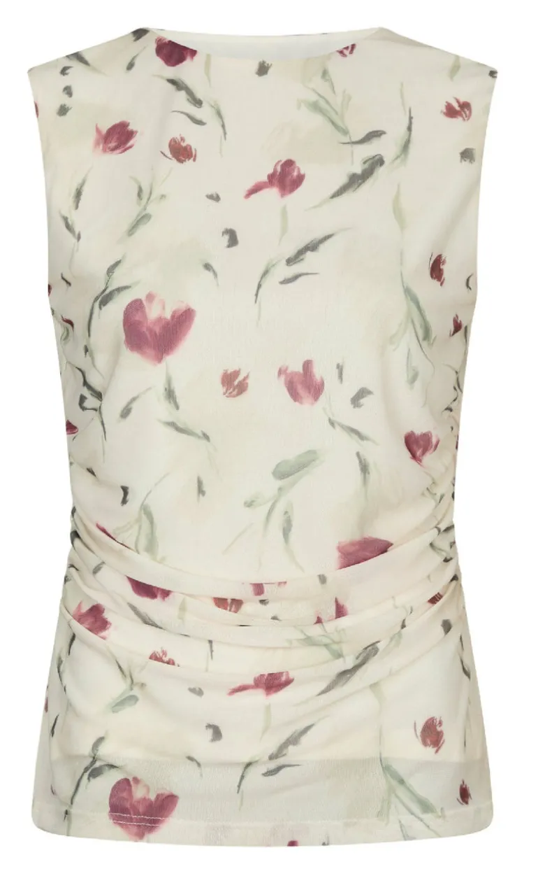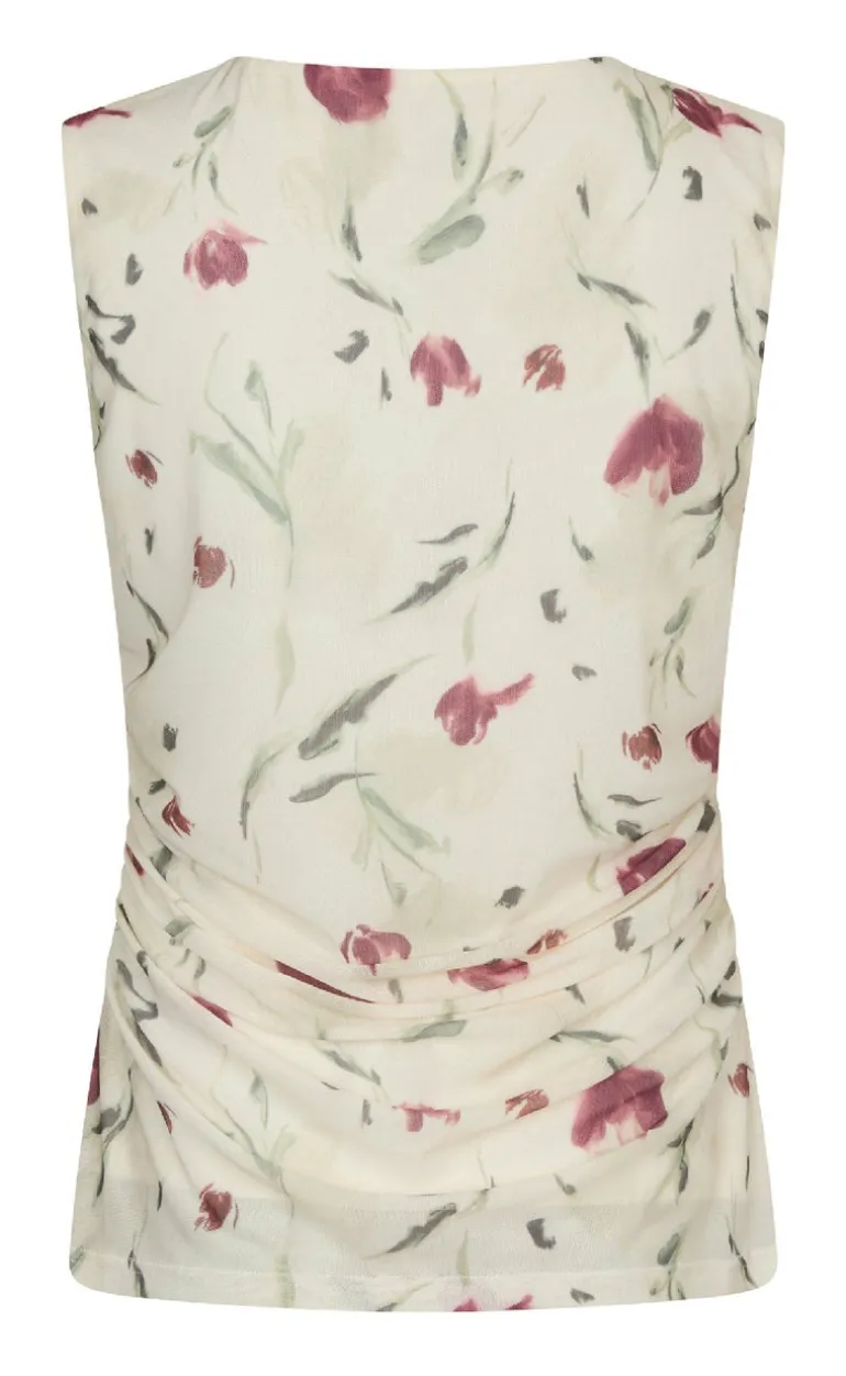Fin top fra Neo Noir i et blomsterprint. Toppen har smukke draperinger og smockdetaljer.