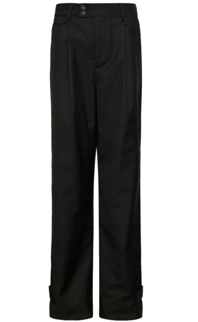 Bukserne har et loose fit med knaplukning fortil.