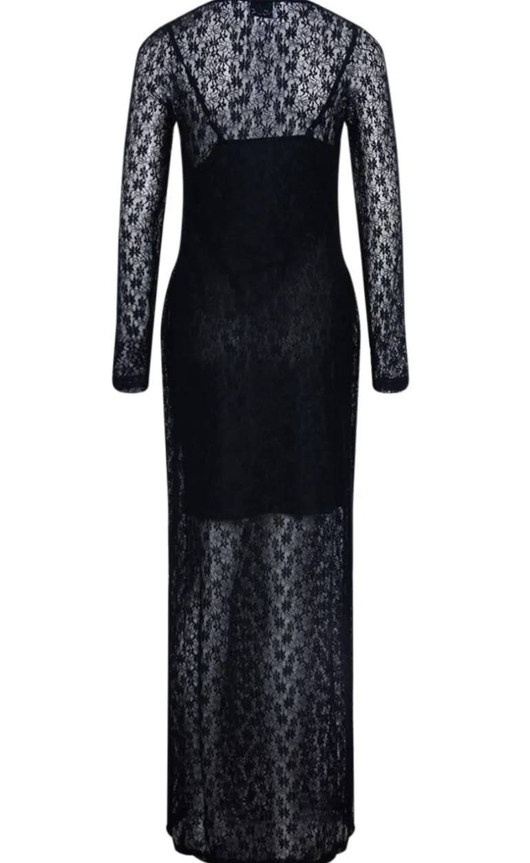 Kjolen er lang og har et gennemsigtigt lag over.