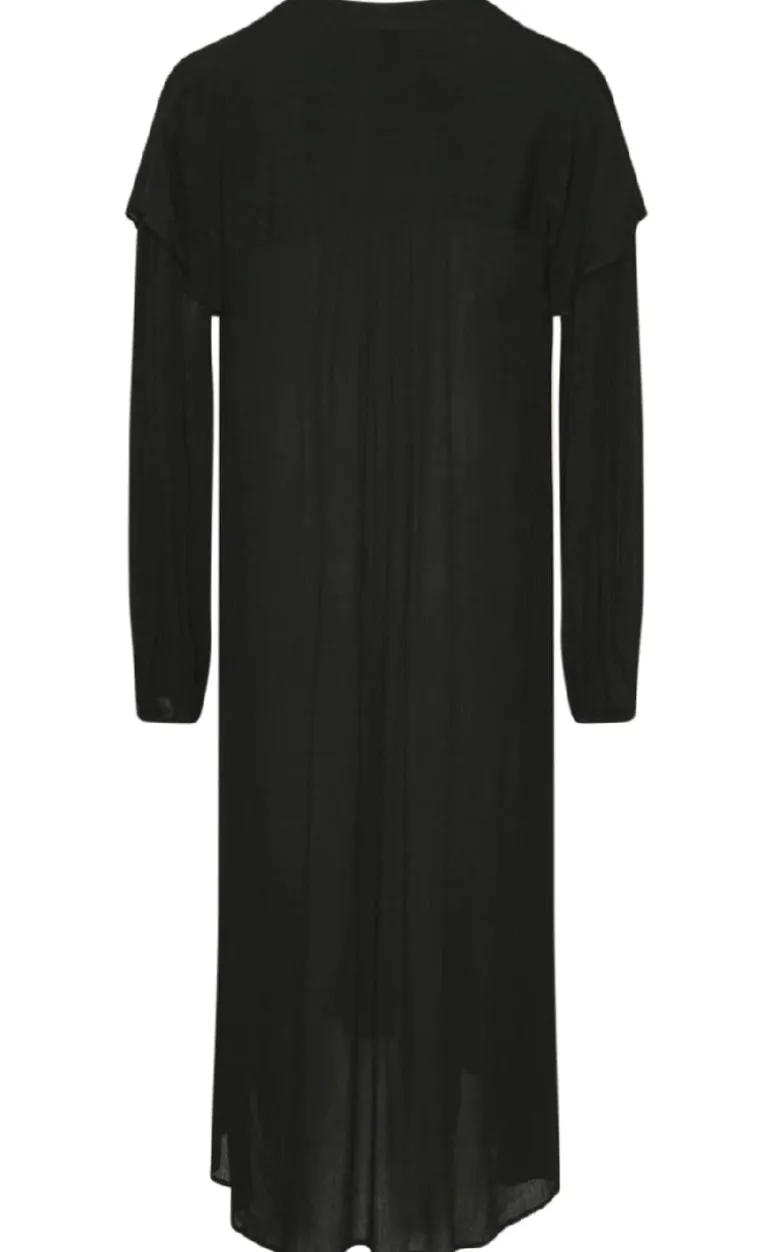 Kjolen har lange ærmer og fin pyntedetalje ved brystet.
